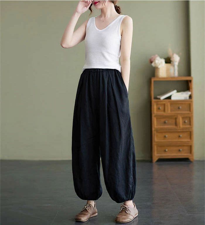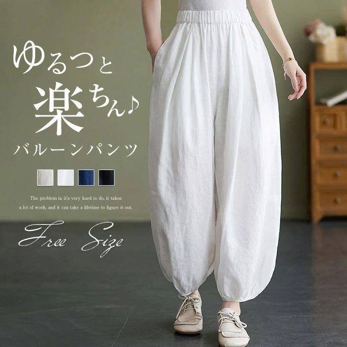バルーンパンツ 春夏 レディース ロング ワイドパンツ 大きいサイズ 体型カバー ロングパンツ サイドポケット ゆったり パンツ 春 カジュア
