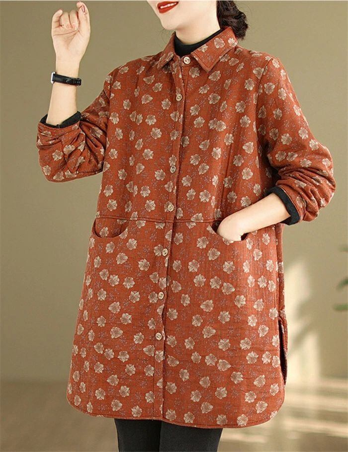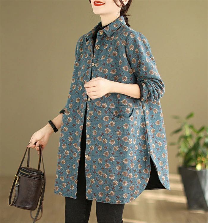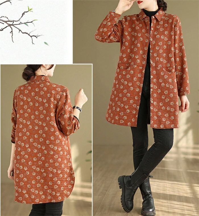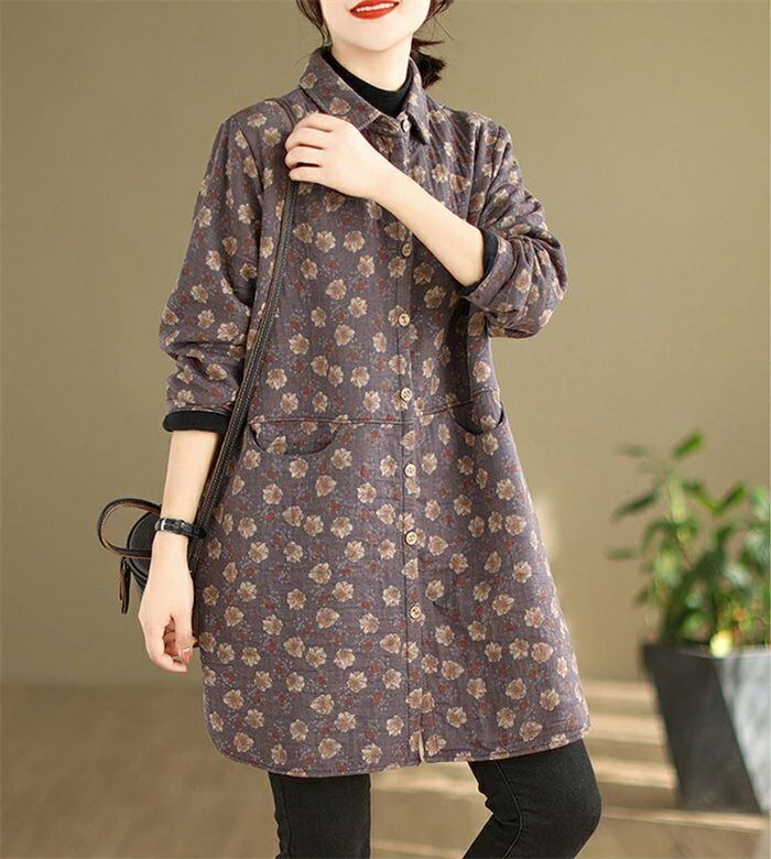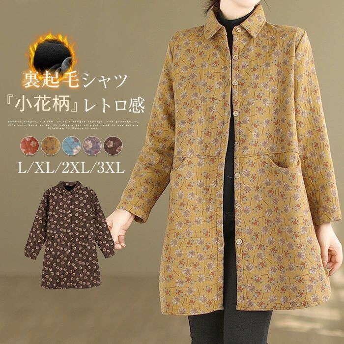 裏起毛 シャツ 裏起毛シャツ レディース 秋冬 ロング丈 長袖シャツ 裏ボア 小花柄 長袖 スタンダードカラー ボア トップス 厚手 暖か 前開き 羽織 ゆったり 体型カバー カジュアル 通勤OL オフィス あったか シンプル 防寒 森ガール レトロ 着?せ 暖かい エスニック