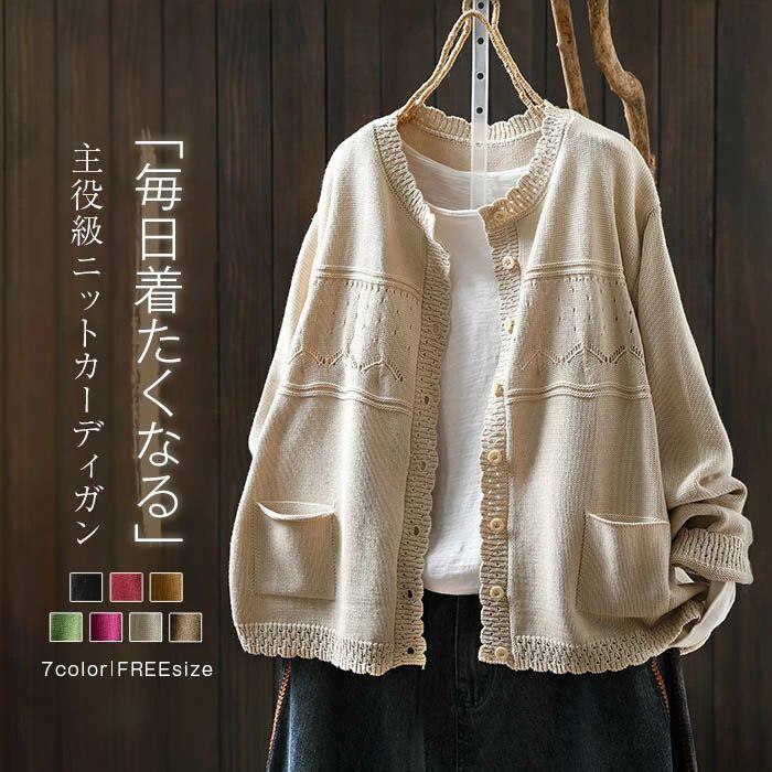 ニットカーディガン コットン カーディガン ニットカーディガン ニット ゆるカーディガン ニットカーデ 羽織り 春 秋 羽織り レディース ア