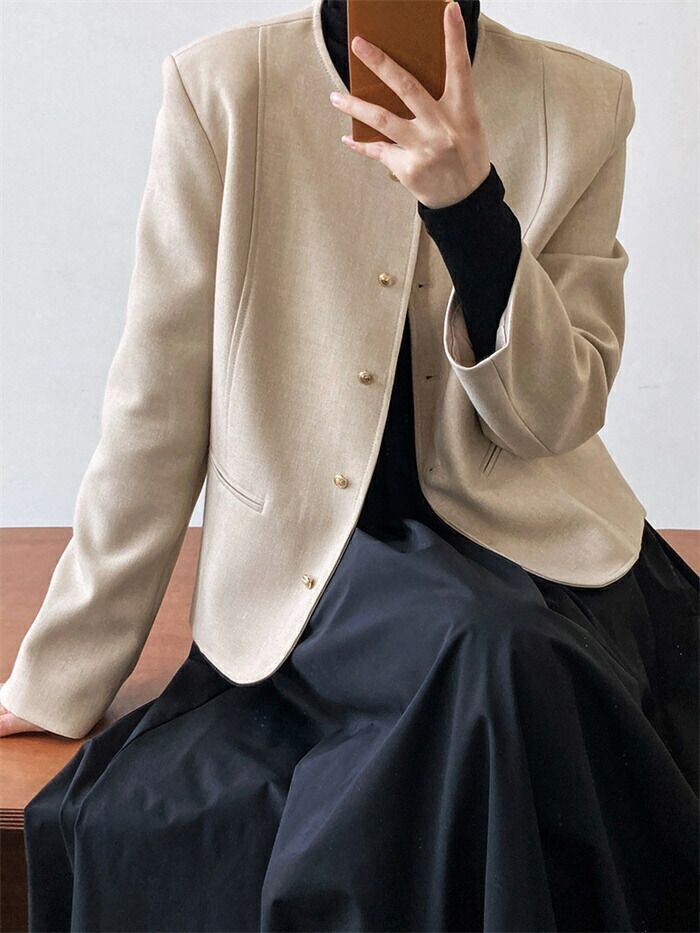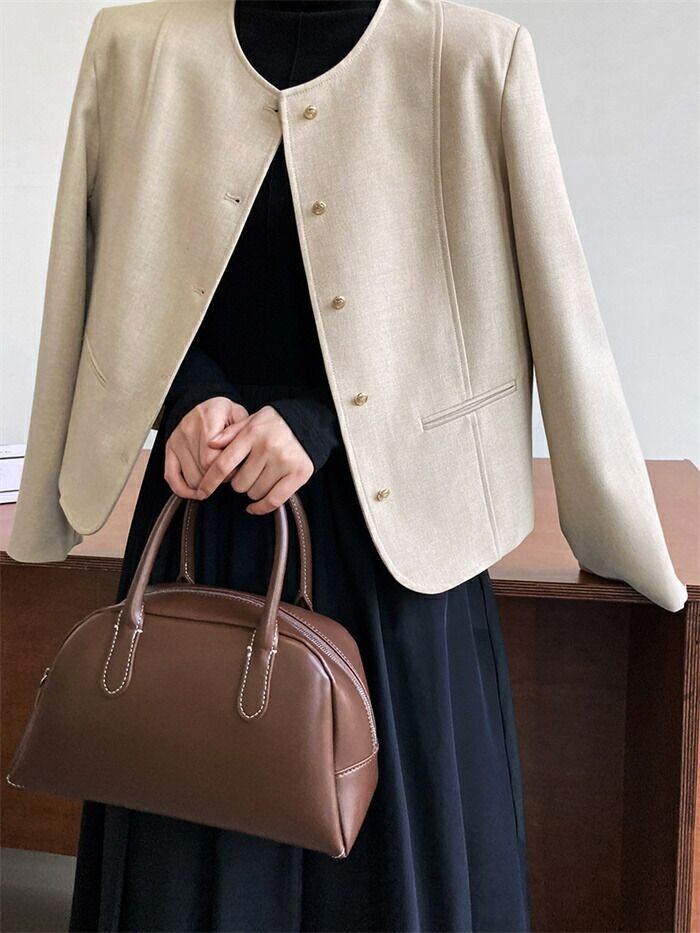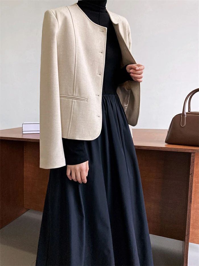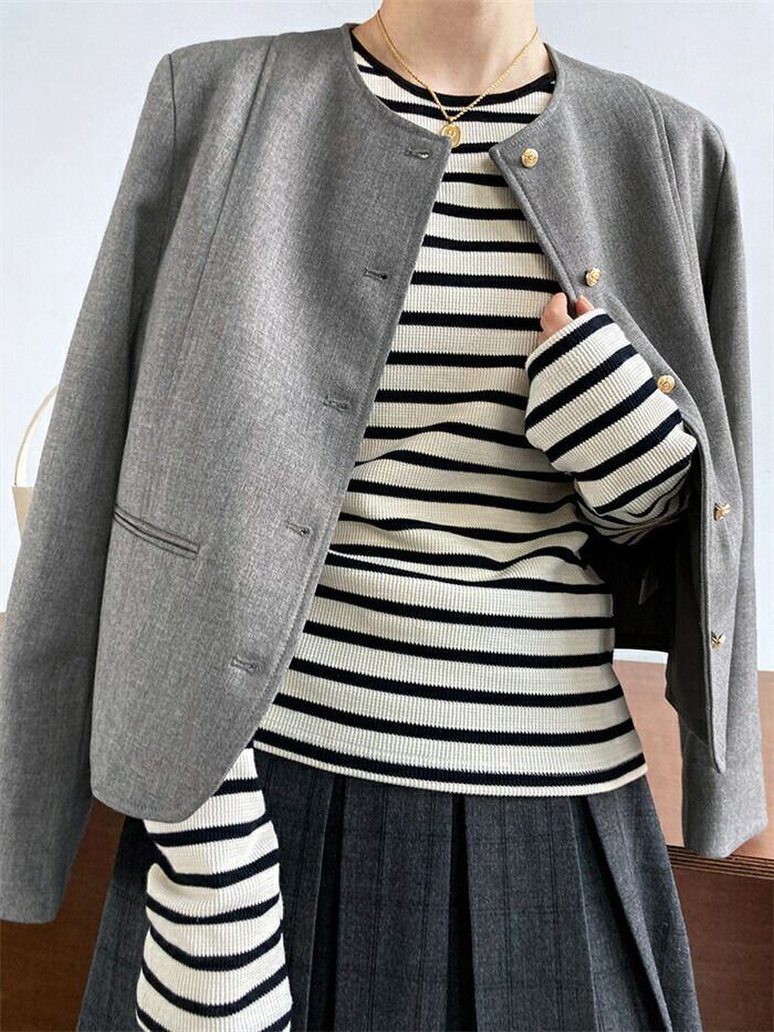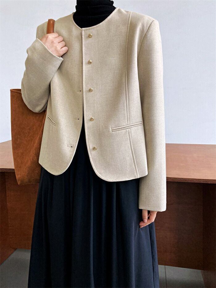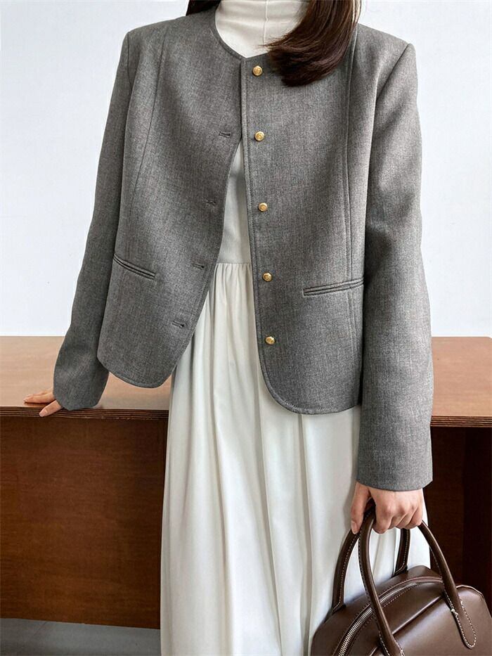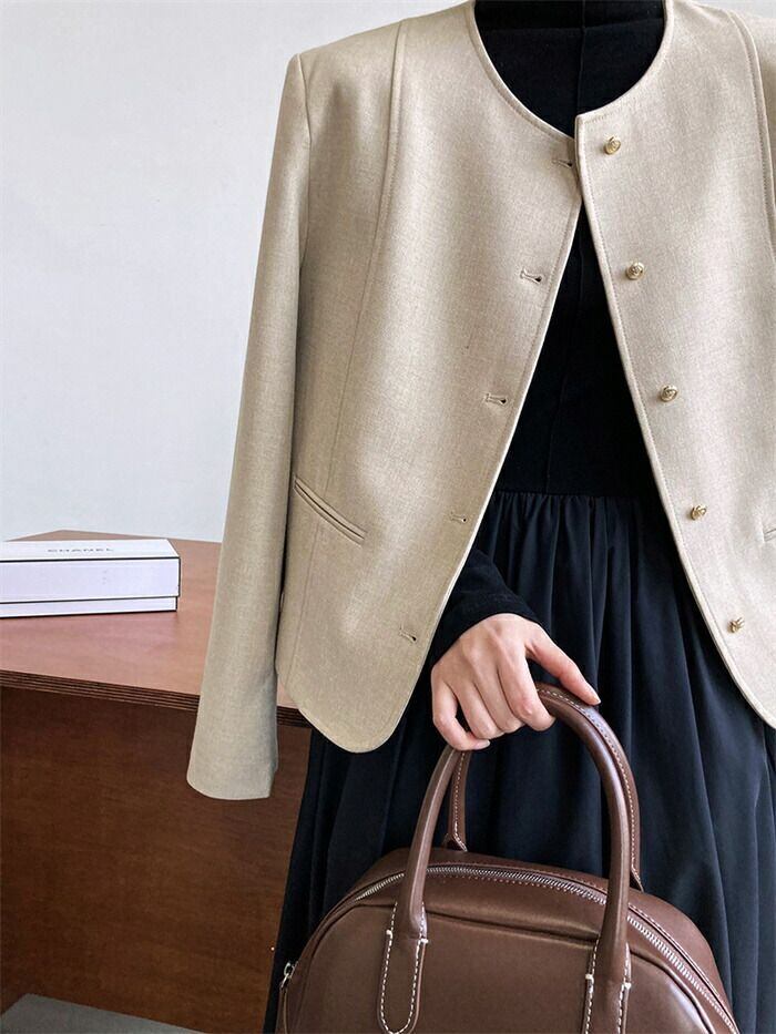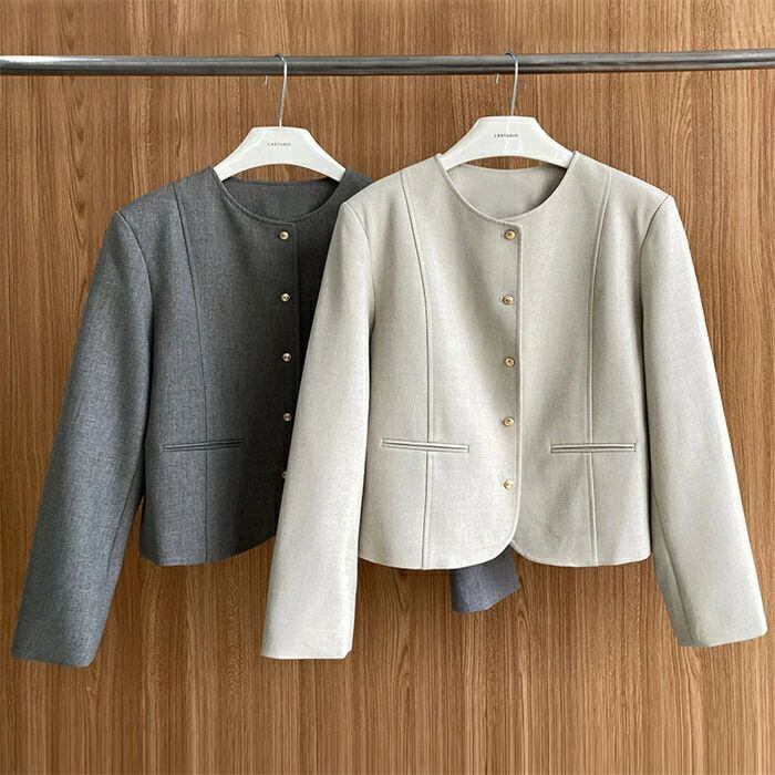 スーツジャケット テーラード スーツ レディース ジャケット フォーマル カーディガン 長袖 無地 クルーネック 丸首 前開き 羽織 トップス