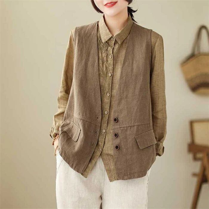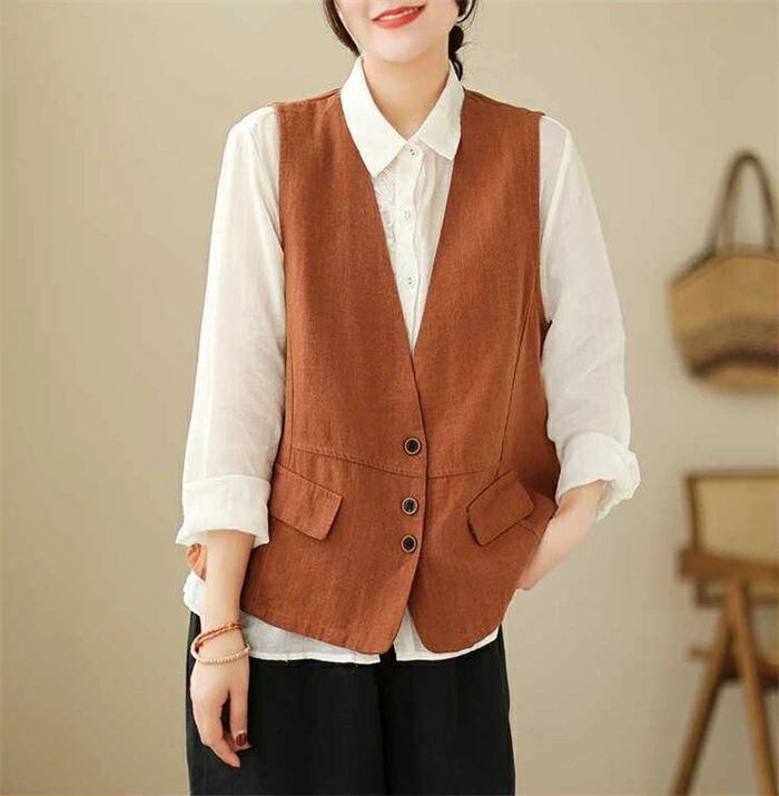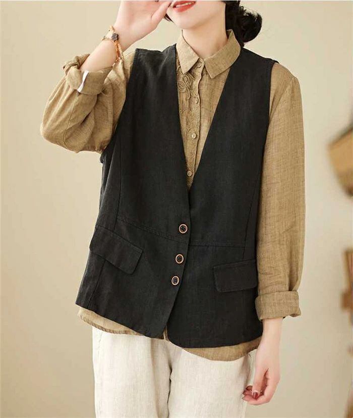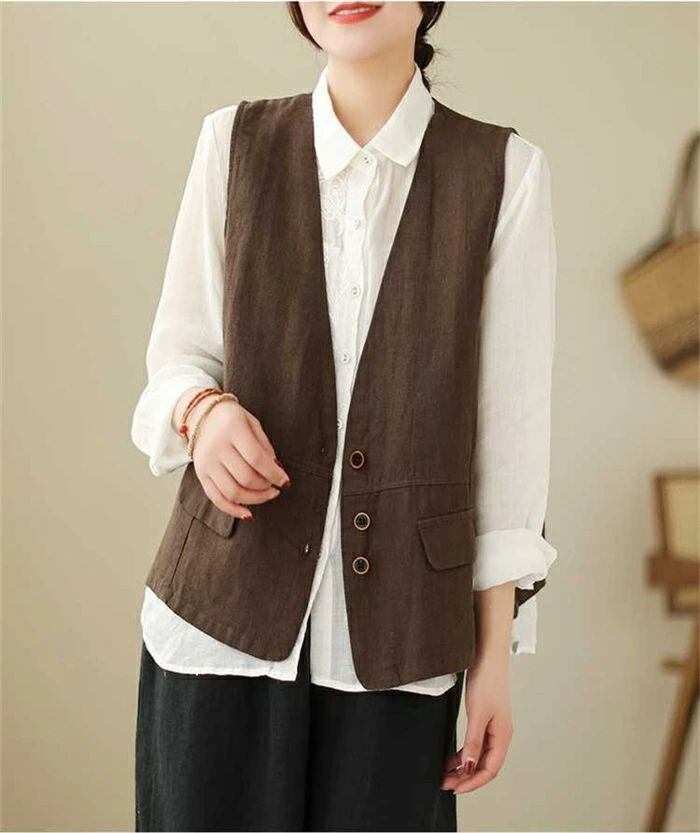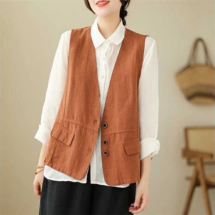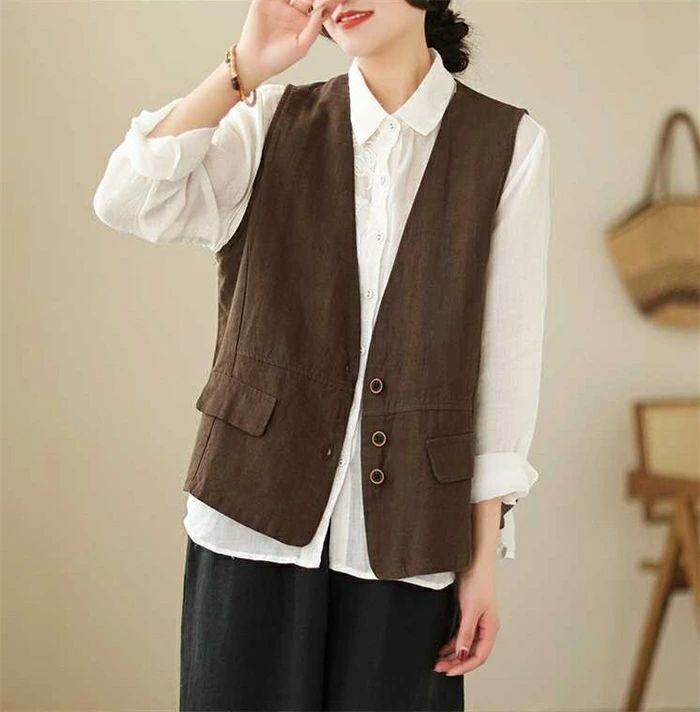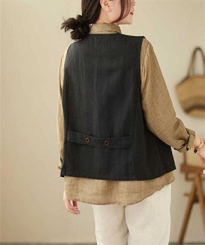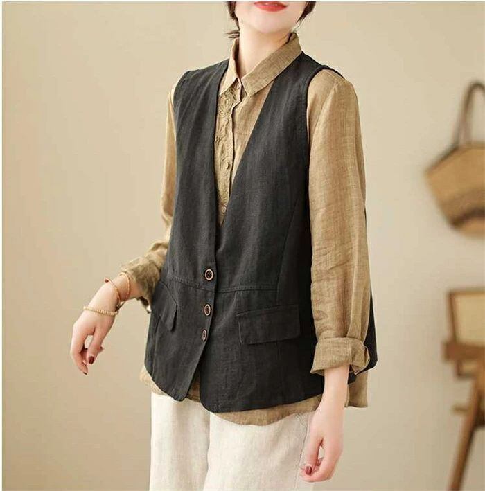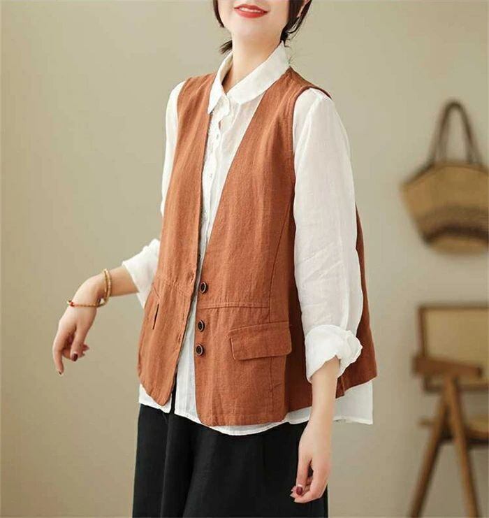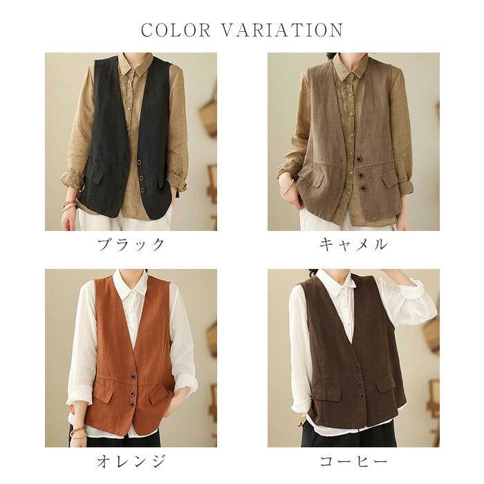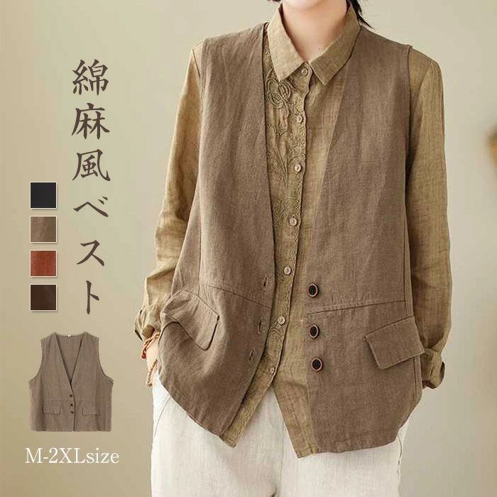 ベスト 綿麻ベスト ジレベスト レディース ジレ トップス ノースリーブ 綿麻 前開き 大きいサイズ レトロ ゆったり 体型カバー おしゃれ オ