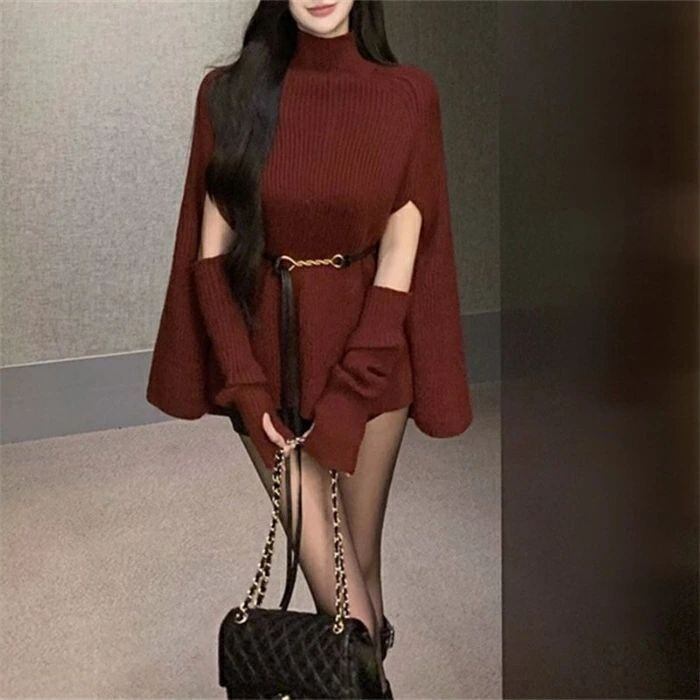 ニット ボレロ マント ハイネック レディース 秋冬 カットソー トップス きれいめ 無地 ケープマント 袖つき カジュアル 通勤OL きれいめ おしゃれ オフィス フォーマル 上品 女性 お出かけ お呼ばれ 30代 40代 50代