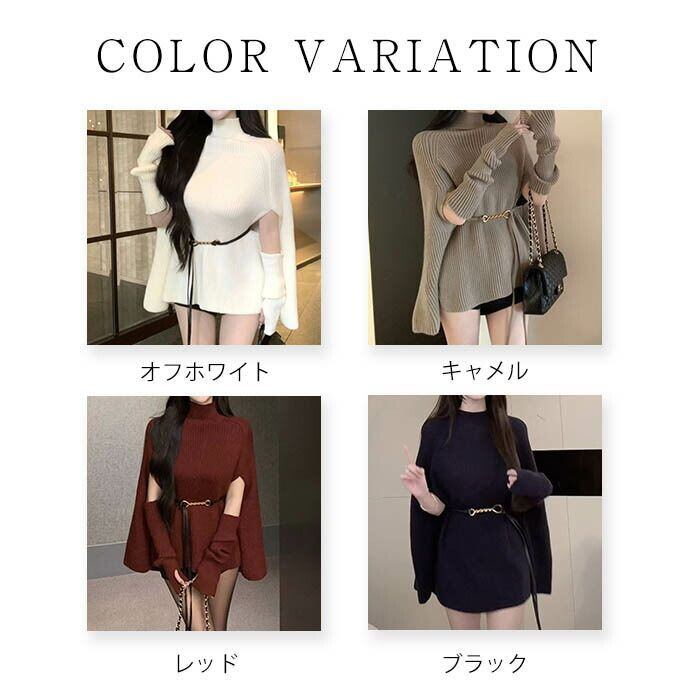 ニット ボレロ マント ハイネック レディース 秋冬 カットソー リブニット トップス きれいめ 無地 リブ ケープマント 袖つき カジュアル