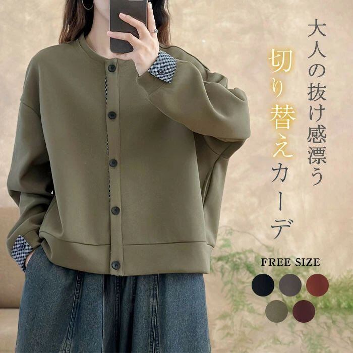 カーディガン ニットカーディガン レディース ニット アウター 切り替え 長袖 カーデ トップス カットソー 前開き 羽織り スウェット シンプル ゆったり 体型カバー カジュアル ナチュラル 柔らか きれいめ 可愛い 女性 春 秋 冬 20代 30代 40代 50代