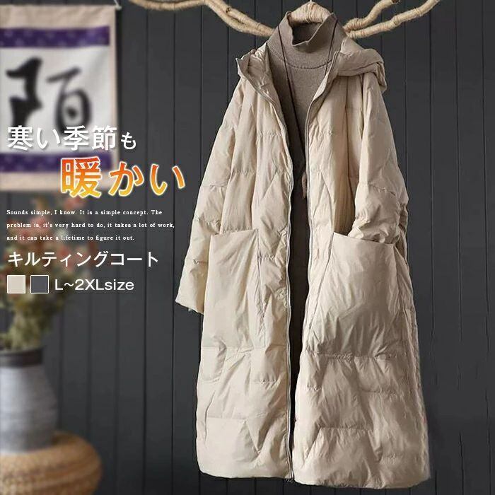 ダウンコート レディース ロング きれいめ コート 秋 冬 キルティングコート 中綿 コート キルティング フード付き コート アウター 中綿