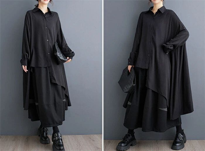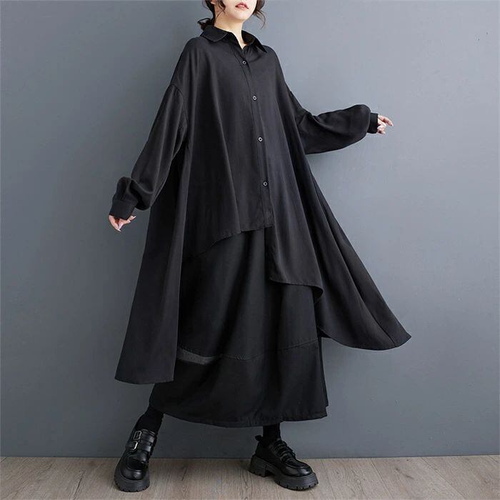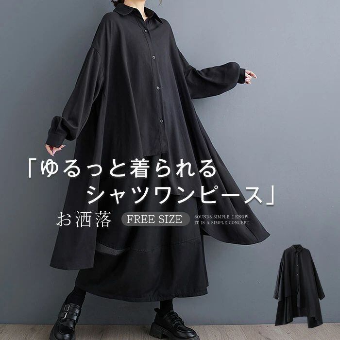 ワンピース レディース 春秋 ロングワンピース シャツワンピース ロング丈 ロングシャツ シャツ 前開き 長袖 ワンピ ロングワンピ 不規則 春 秋 ゆったり 体型カバー 着?せ おしゃれ カジュアル シンプル 20代 30代 40代 50代 送料無料