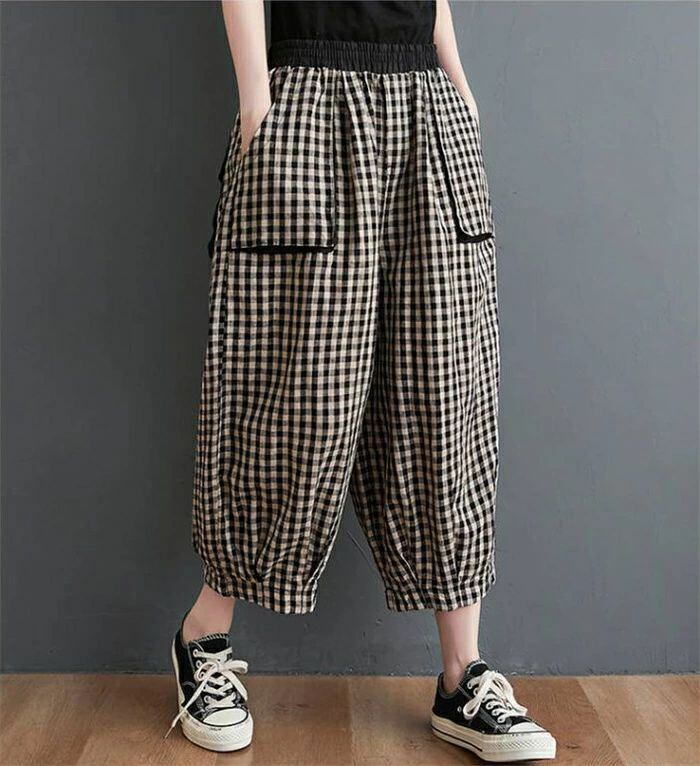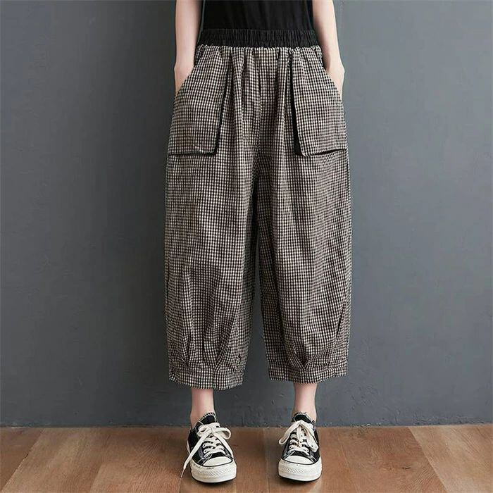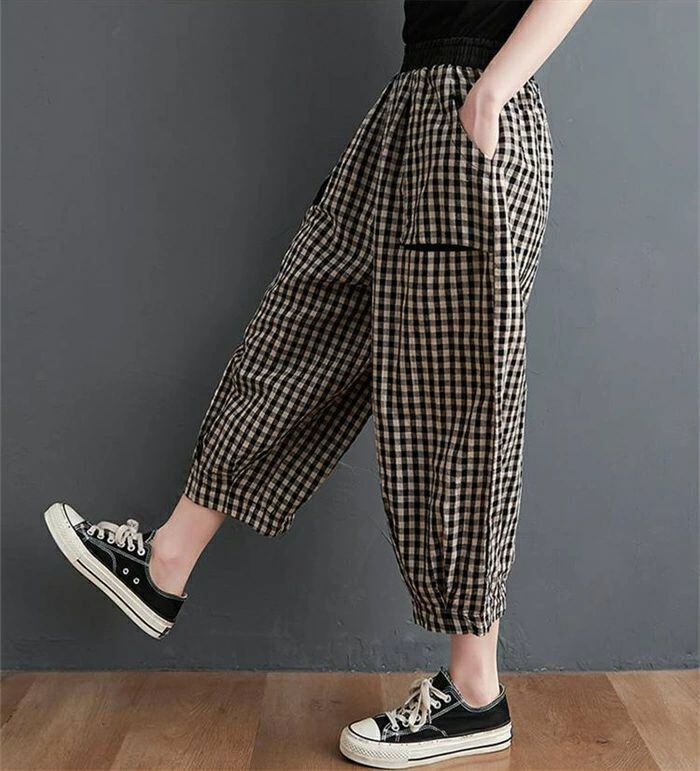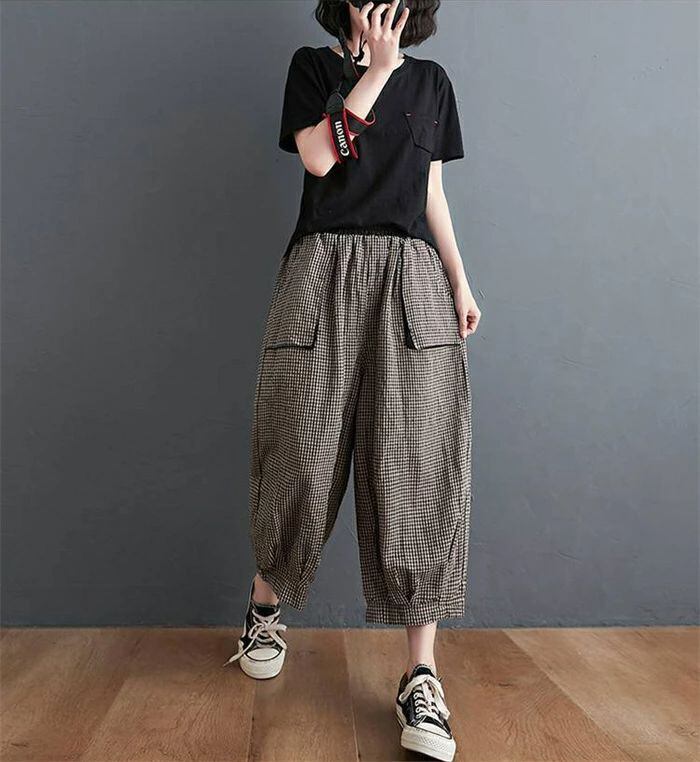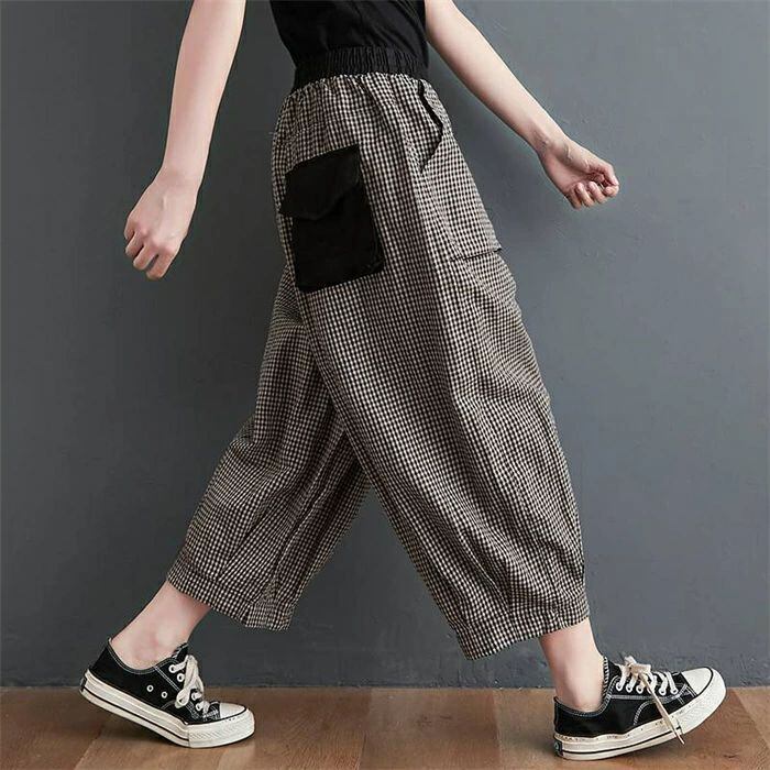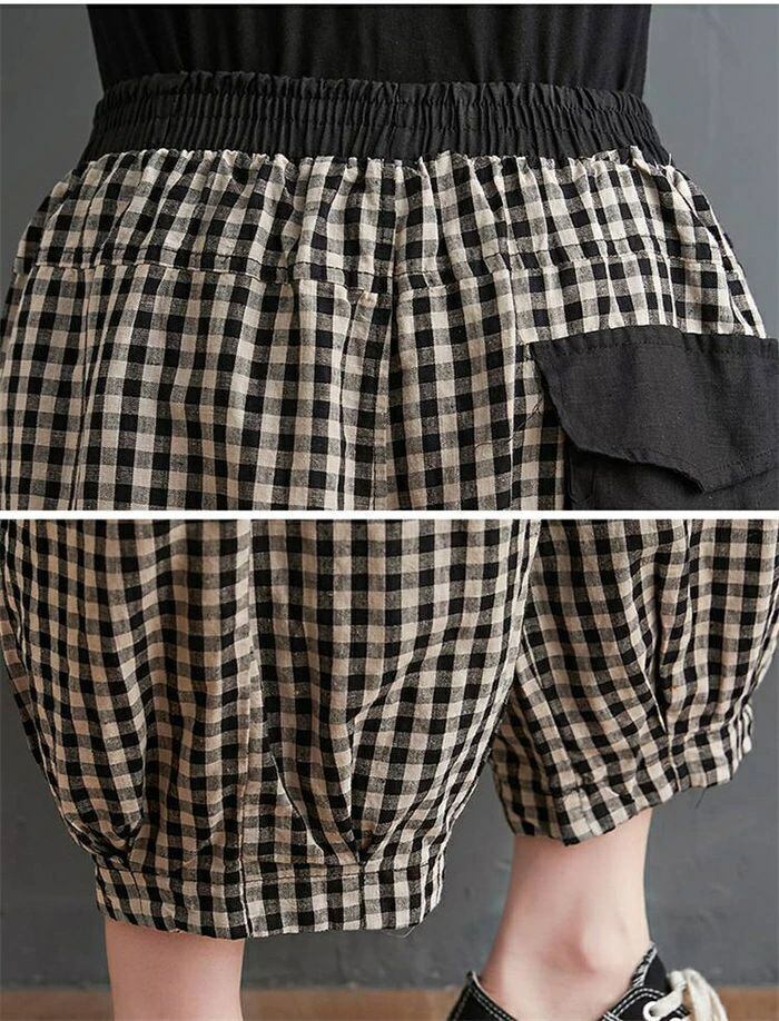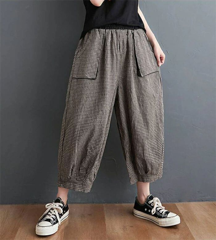バルーンパンツ パンツ ワイドパンツ レディース チェックパンツ バルーン チェック柄 ワイド 七分丈 綿麻風 ウエストゴム イージーパンツ ボトムス ズボン ゆったり 体型カバー 着?せ ナチュラル リラックス カジュアル カジュアル 可愛い 20代 30代 40代
