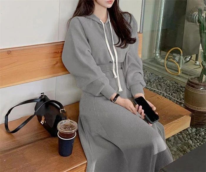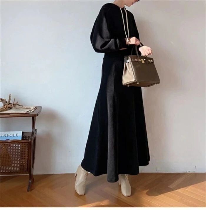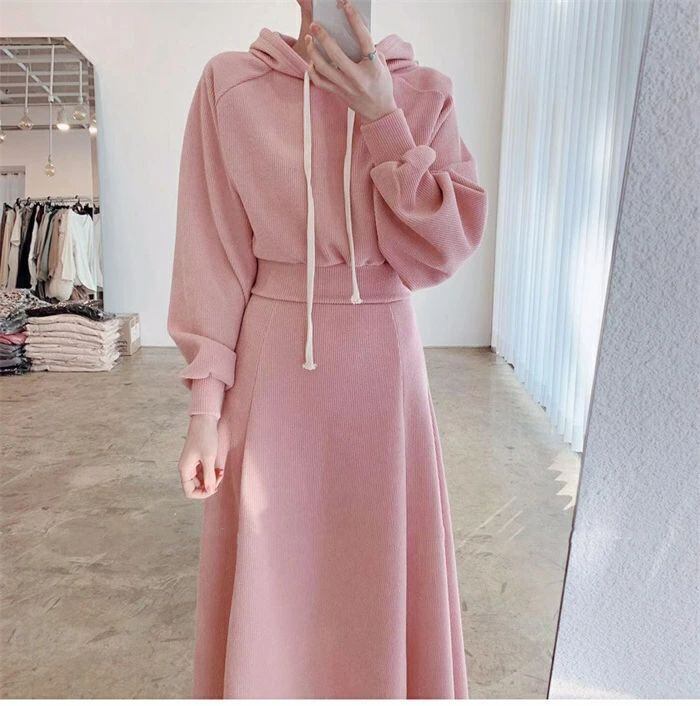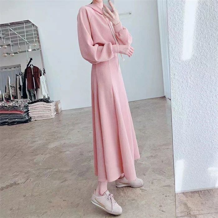 セットアップ レディース 春秋 スカートセットアップ 2点セット パーカー フード付き 長袖 リブ ロングスカート ウエストゴム スウェット トレーナー Aライン 無地 大きいサイズ ゆったり 体型カバー 着?せ カジュアル シンプル おしゃれ ファッション カジュアル 通勤