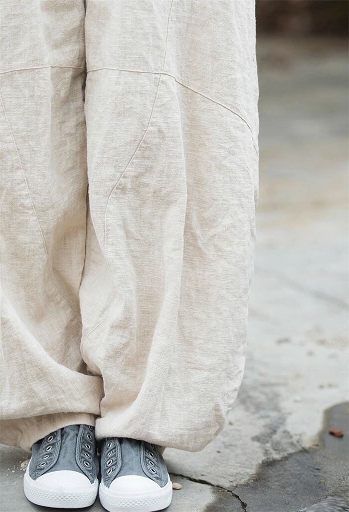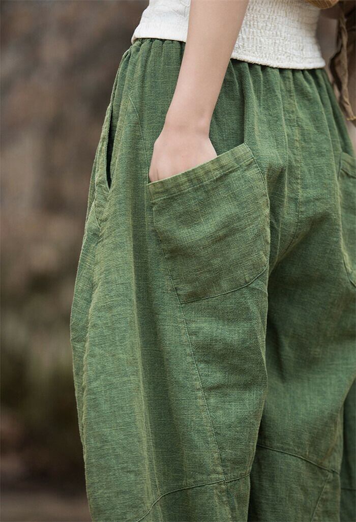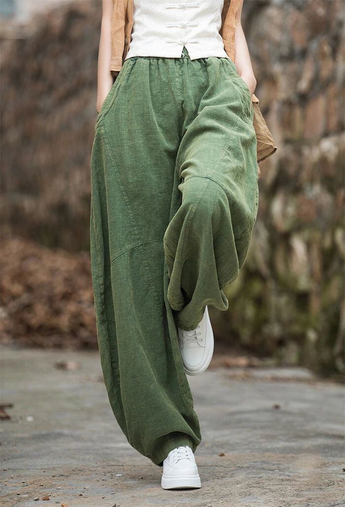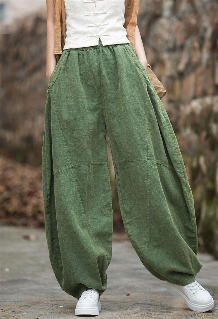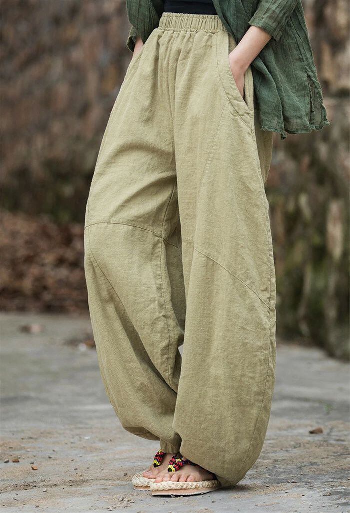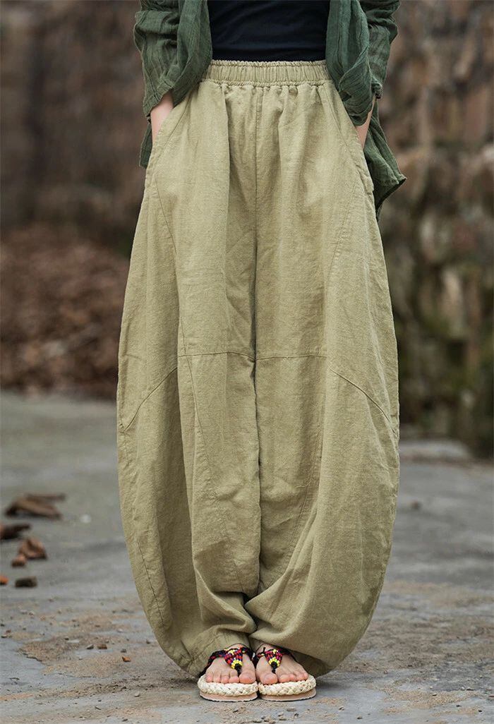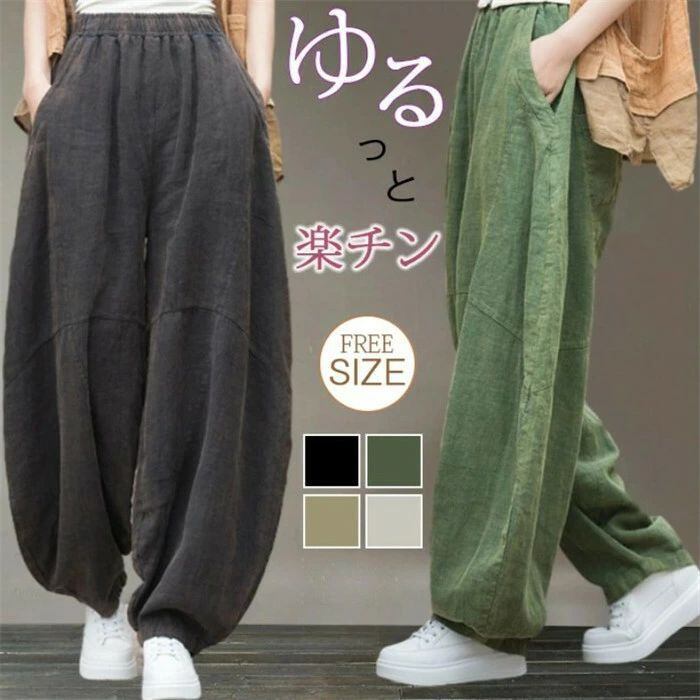 リネン パンツ レディース 涼しい バルーンパンツ アンクル サルエルパンツ 綿麻 イージーパンツ リネン コットン ワイドパンツ 体型カバー