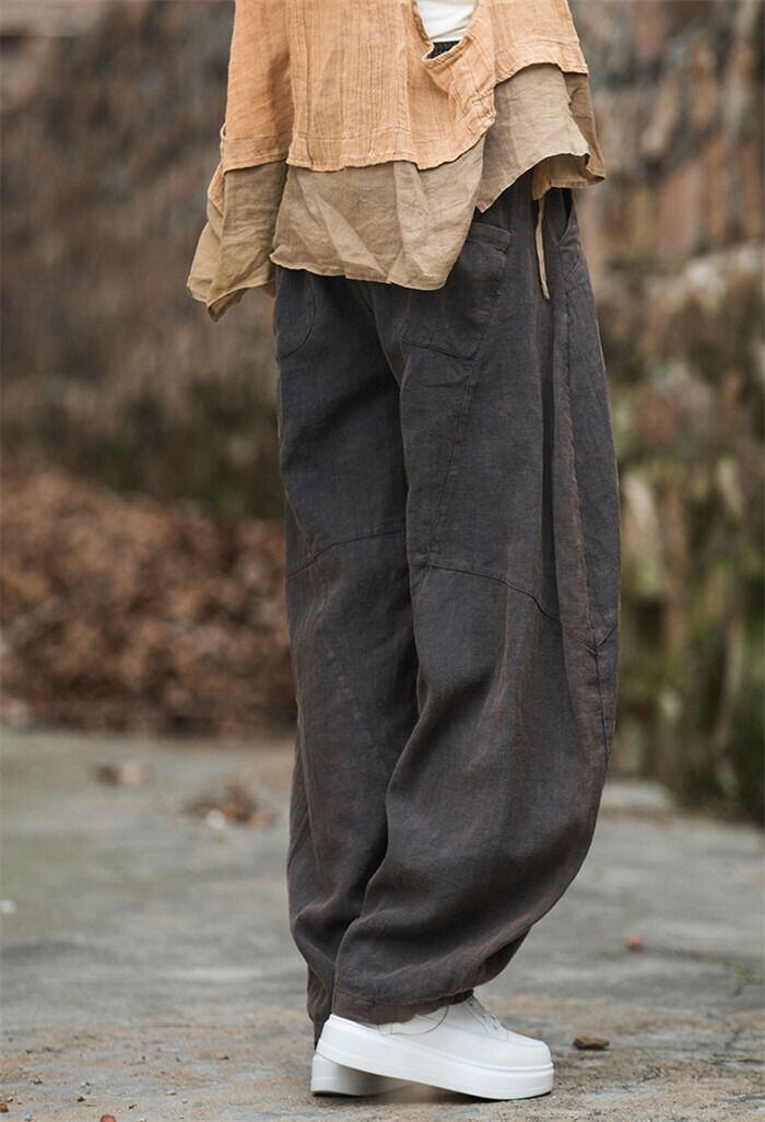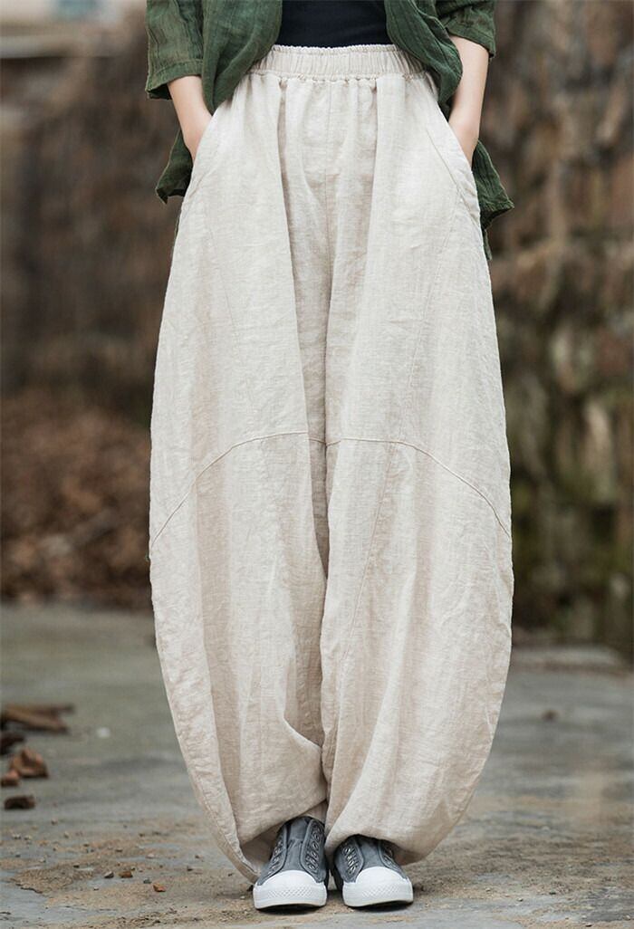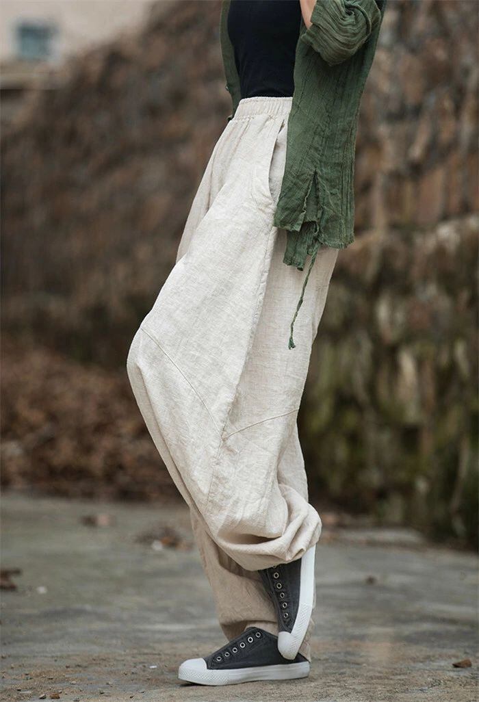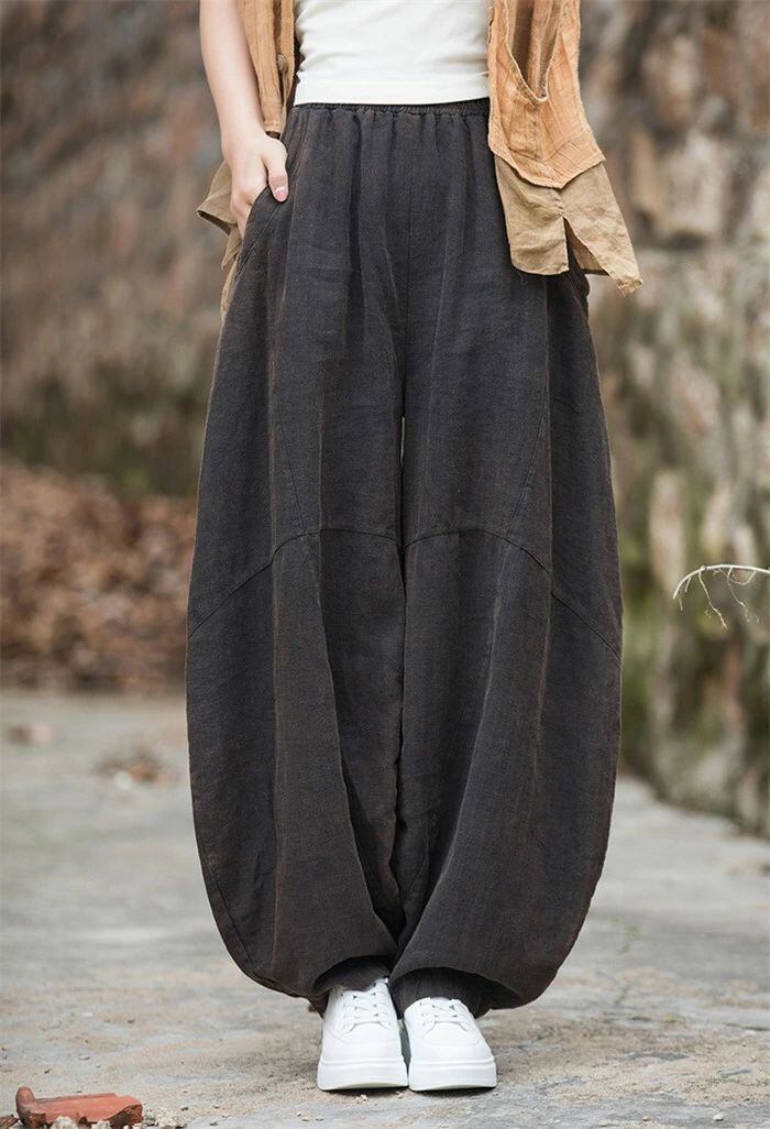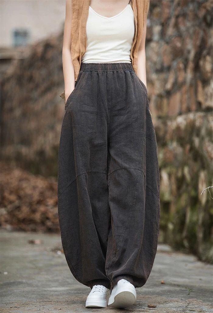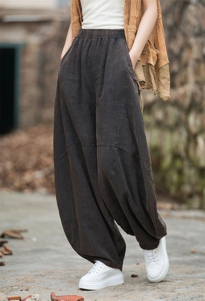 リネン パンツ レディース 涼しい バルーンパンツ アンクル サルエルパンツ 綿麻 イージーパンツ リネン コットン ワイドパンツ 体型カバー