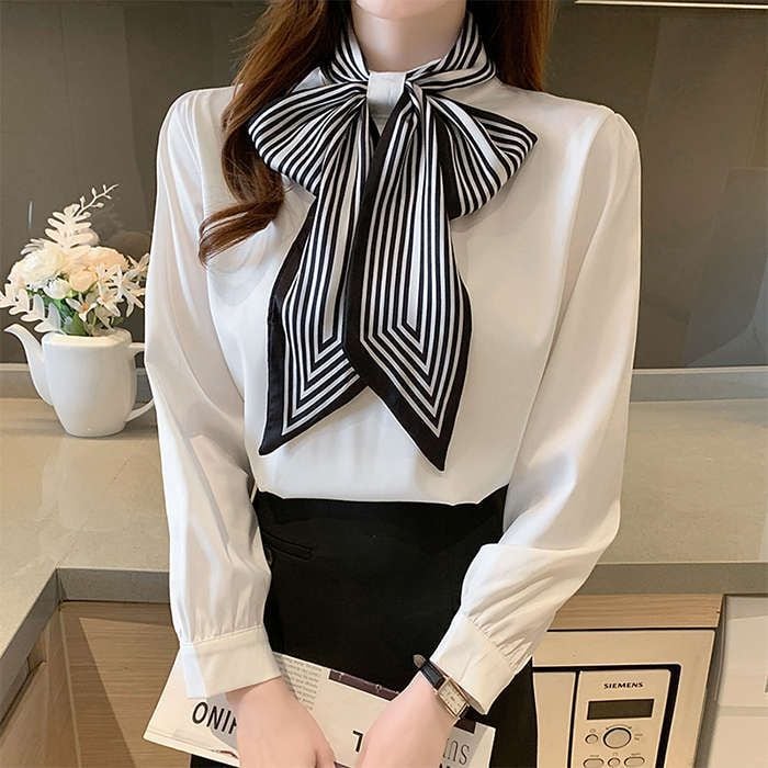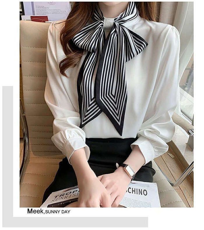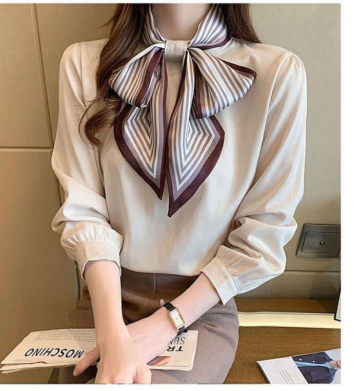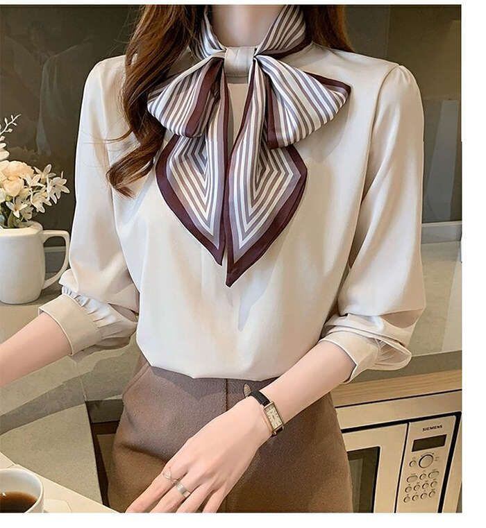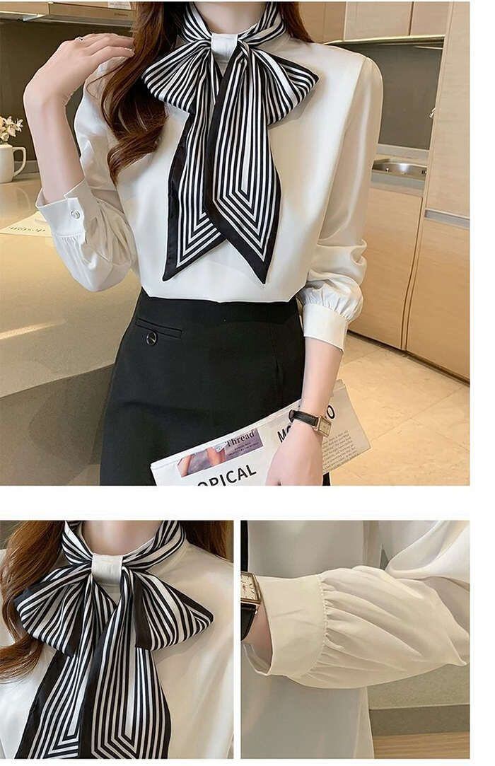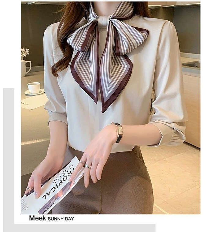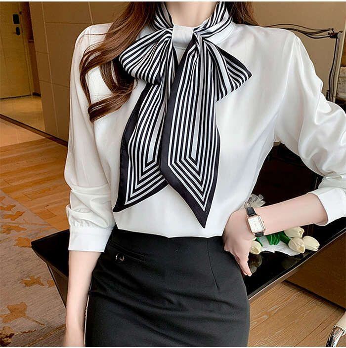 ブブラウス レディース 長袖ブラウス 春秋 オフィスブラウス ボウタイブラス リボンネック オシャレブラウス 可愛い トップス 韓国風 大人