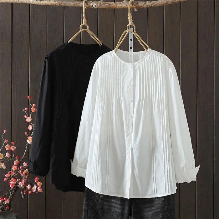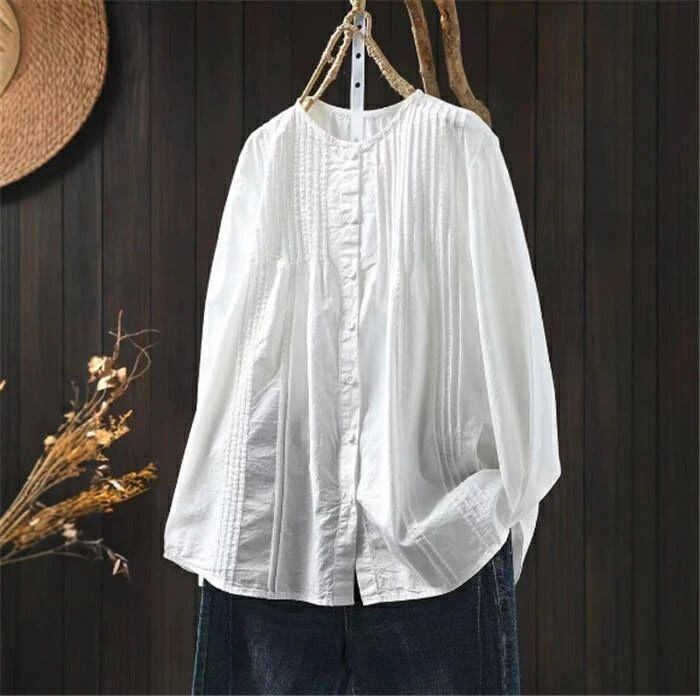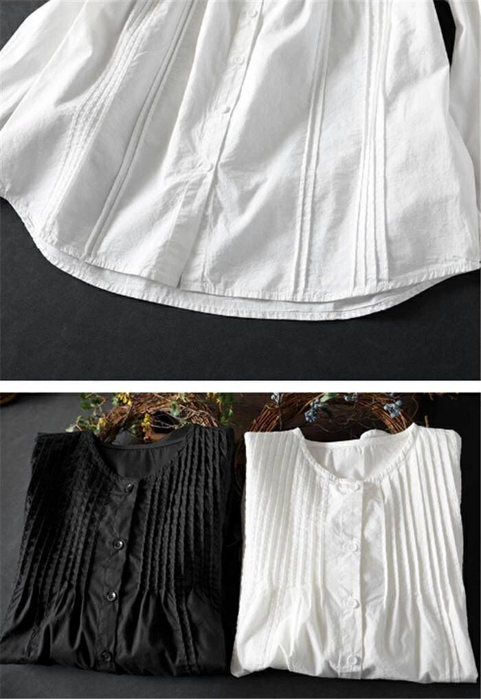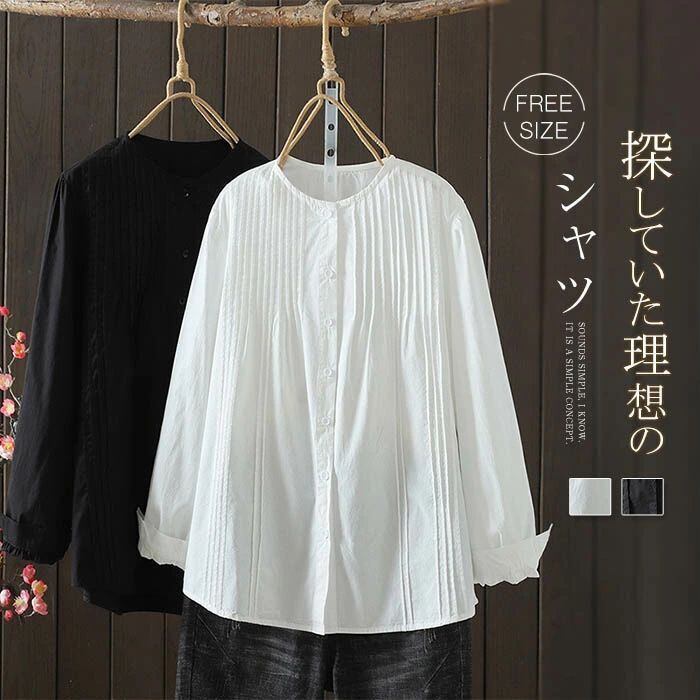 シャツ ブラウス 長袖 レディース ノーカラー ピンタック シャツブラウス トップス 春 秋 フォーマル 大人 可愛い 森ガール ファッション おしゃれ きれいめ ゆったり 体型カバー 重ね着 白シャツ 長袖シャツ OL 通勤 オフィス 着回し 入学式 卒業式 入園式 白 ホワイト カジュアル オフィス ナチュラル 定番 可愛い