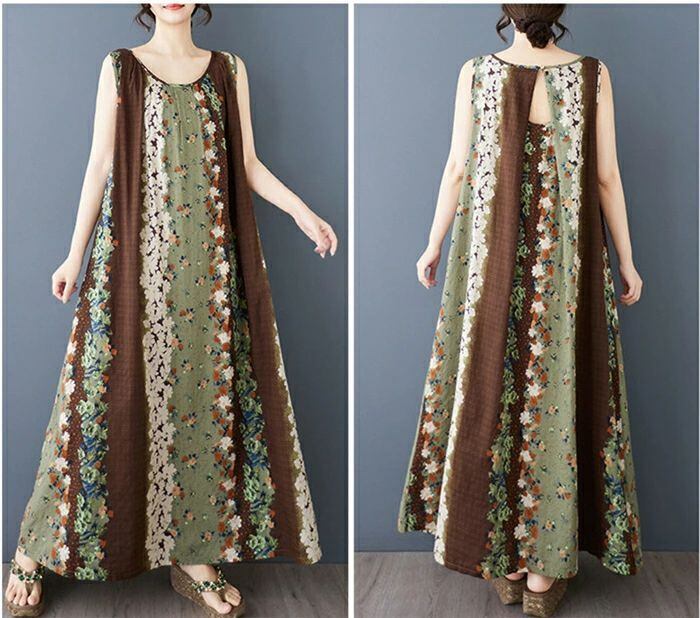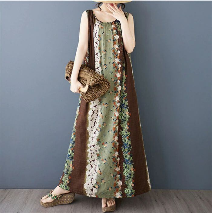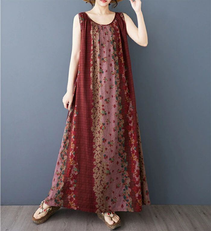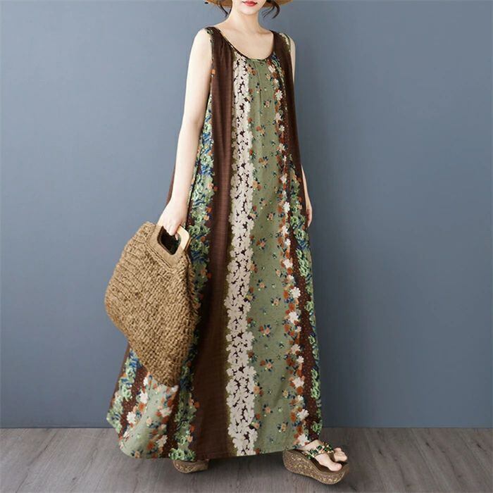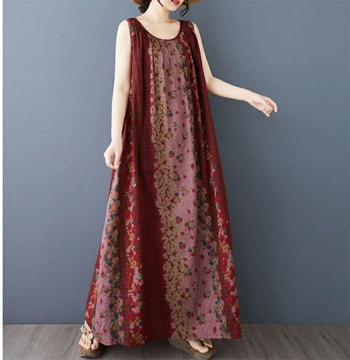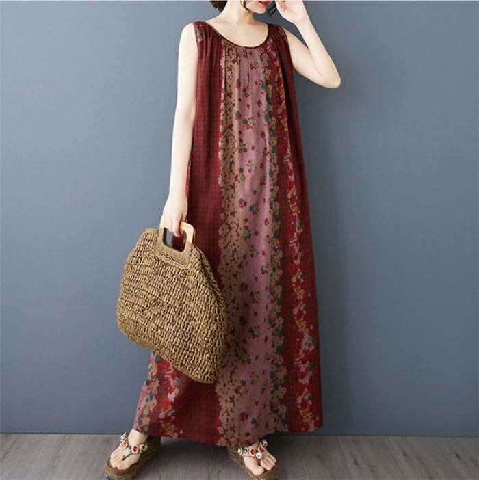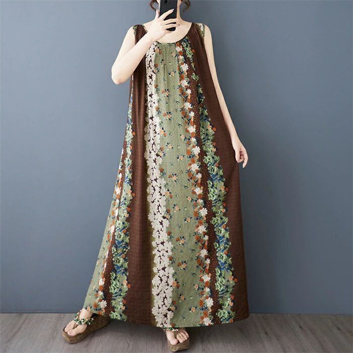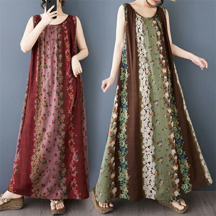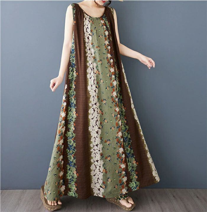 ワンピース ノースリーブ レディース 夏 ノースリーブワンピース 花柄 マキシワンピース マキシ クルーネック Aライン 大きいサイズ ロングワンピース ロング丈 ゆったり 体型カバー 着?せ きれいめ 春 夏 旅行 母 森ガール リゾート ビーチ 20代 30代 40代 50代