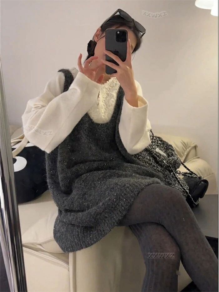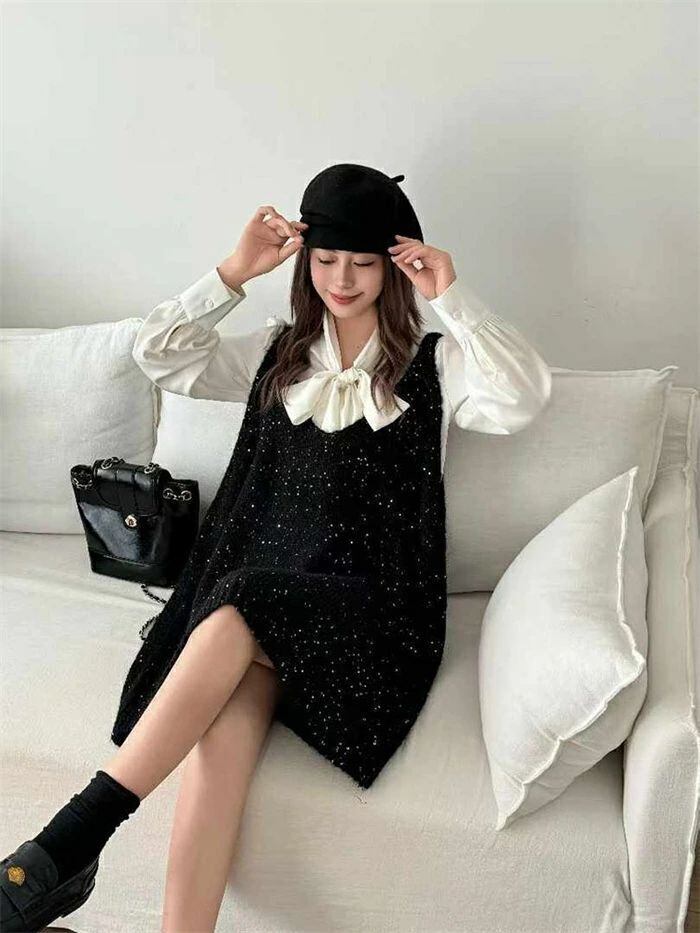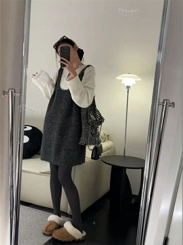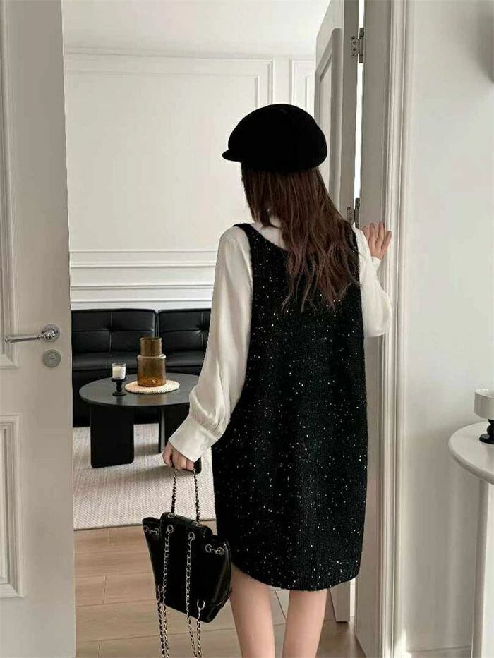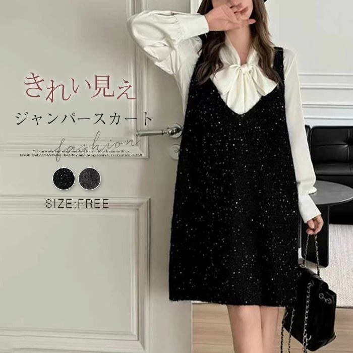 ジャンパースカート キャミワンピース レディース 春秋 ジャンスカ ニット ワンピース ノースリーブ 膝丈 ベストワンピース 無地 ワンピ ニ