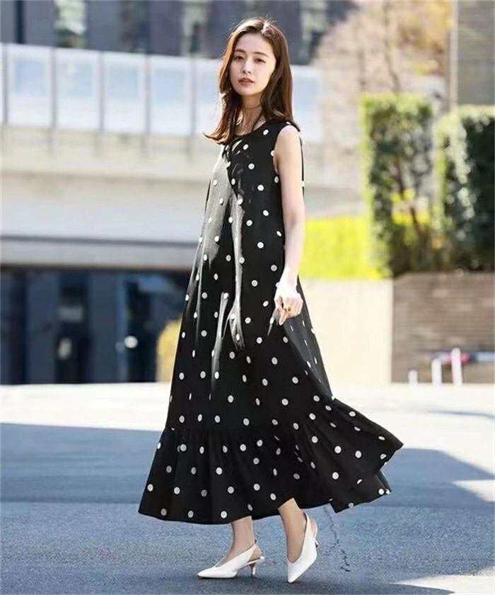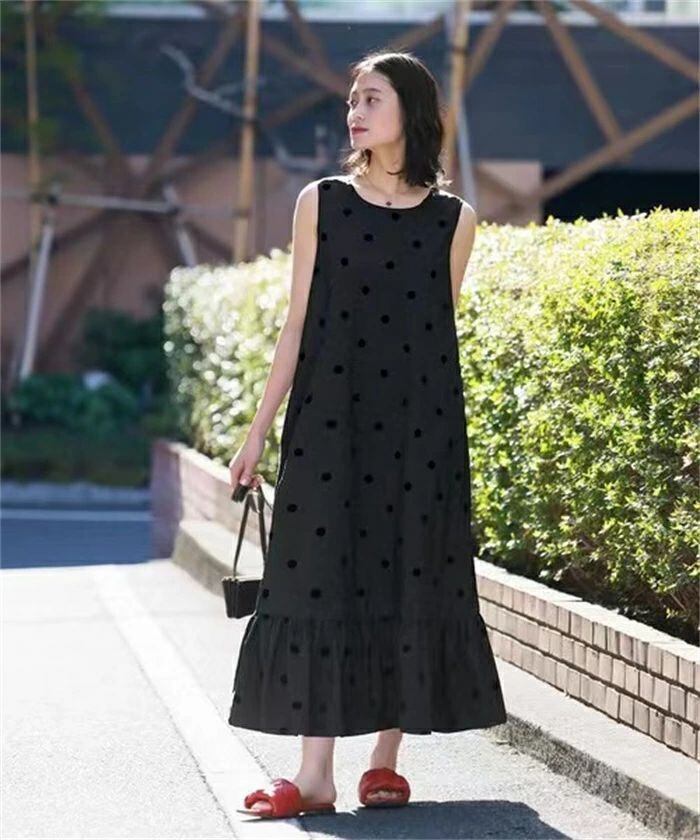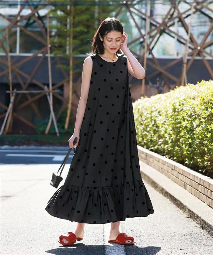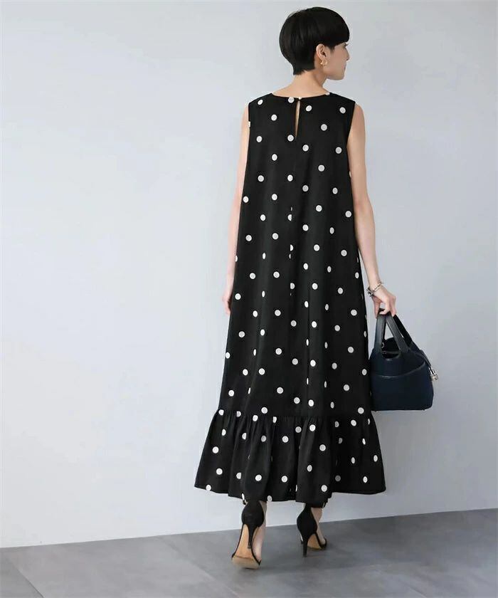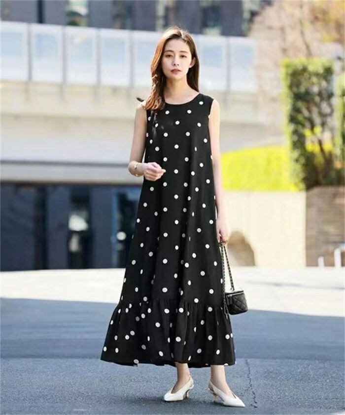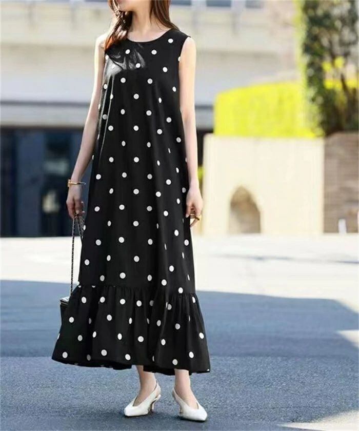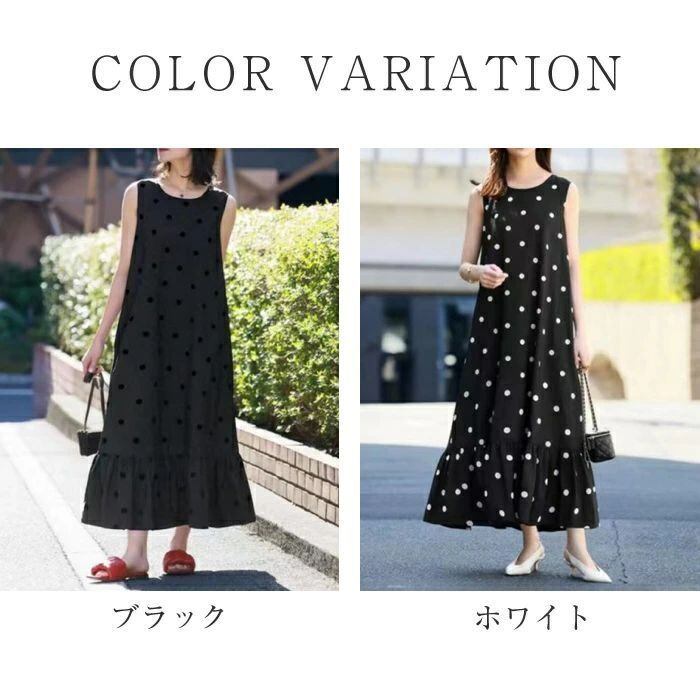 ジャンスカ ワンピース レディース 春夏 ジャンパースカート ロングワンピース ノースリーブ ドット柄 ロング丈 Aライン マキシ フレア ワ
