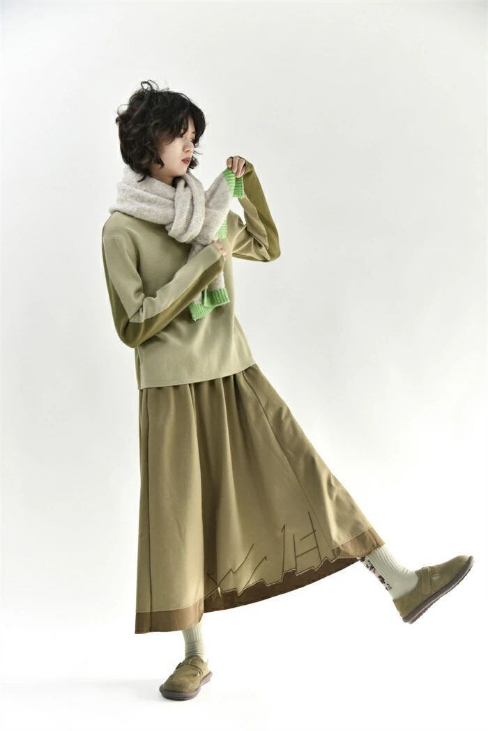 ト無地スカート綿麻混スカートプリーツスカートリネンスカートサロペット