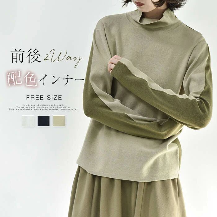 Tシャツ インナー 配色 レディース ハイネック 前後2way 配色インナー カットソー トップス 長袖 ハイネックインナー tシャツ 重ね着 イン