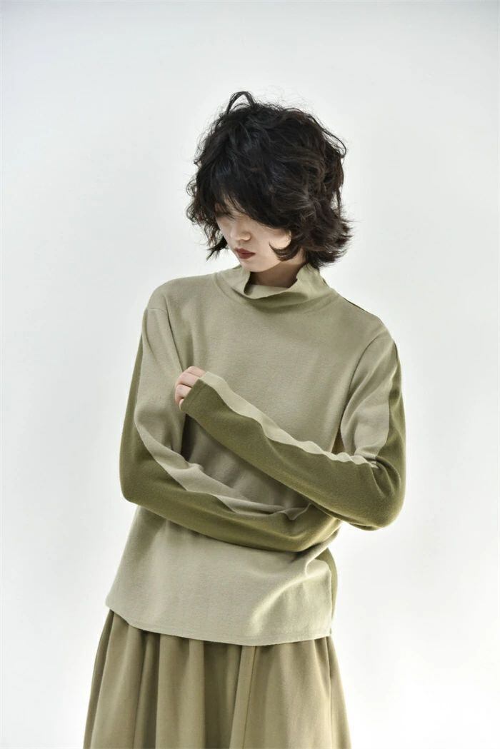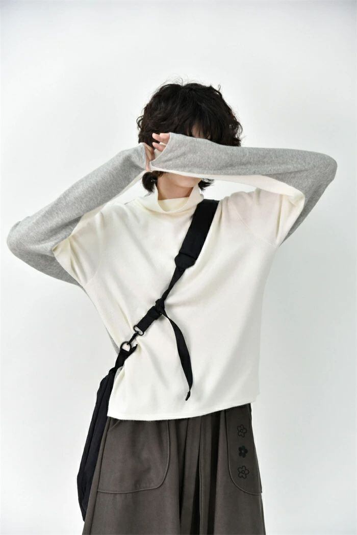 Tシャツ インナー 配色 レディース ハイネック 前後2way 配色インナー カットソー トップス 長袖 ハイネックインナー tシャツ 重ね着 インナーシャツ ルームウェア ウェア 着痩せ カジュアル シンプル きれいめ お洒落 柔らかい 大人 オフィス 通勤 通学 秋 秋服