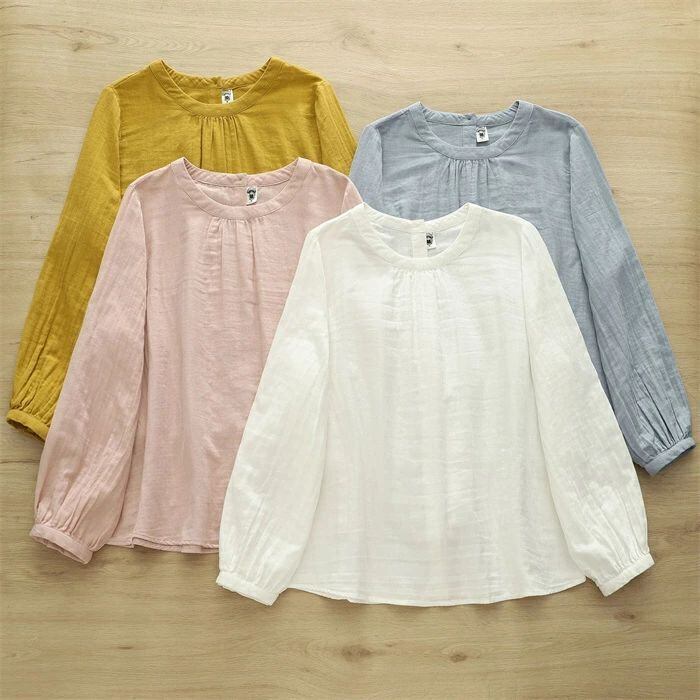 ブラウス ガーゼ レディース シャツ ガーゼシャツ 綿100% シャツブラウス コットン 長袖 綿 ダブルガーゼシャツ 無地 綿ガーゼ 可愛い ゆったり 体型カバー 着?せ 森ガール カジュアル シンプル きれいめ 通勤OL 通学 20代 30代 40代