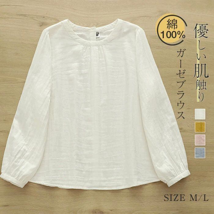 ブラウス ガーゼ レディース シャツ ガーゼシャツ 綿100% シャツブラウス コットン 長袖 綿 ダブルガーゼシャツ 無地 綿ガーゼ 可愛い ゆ