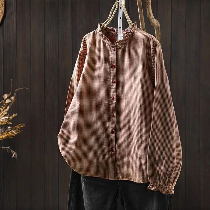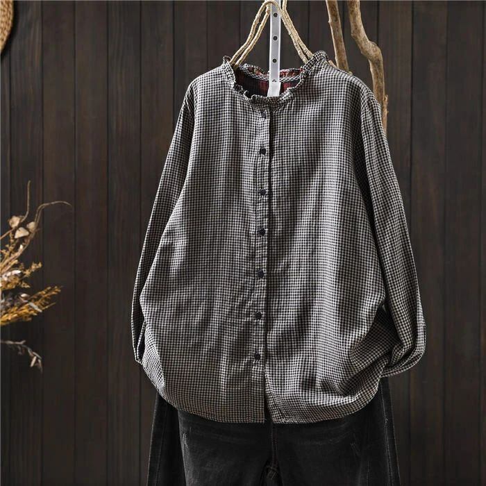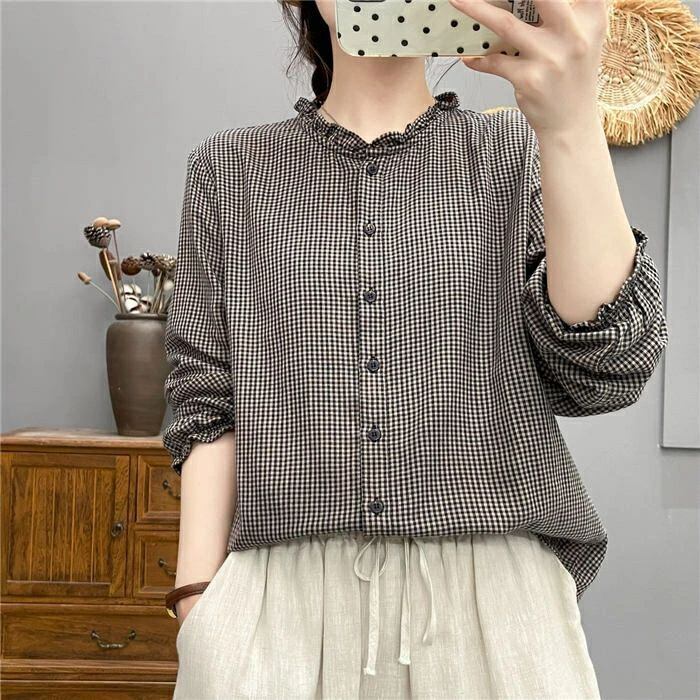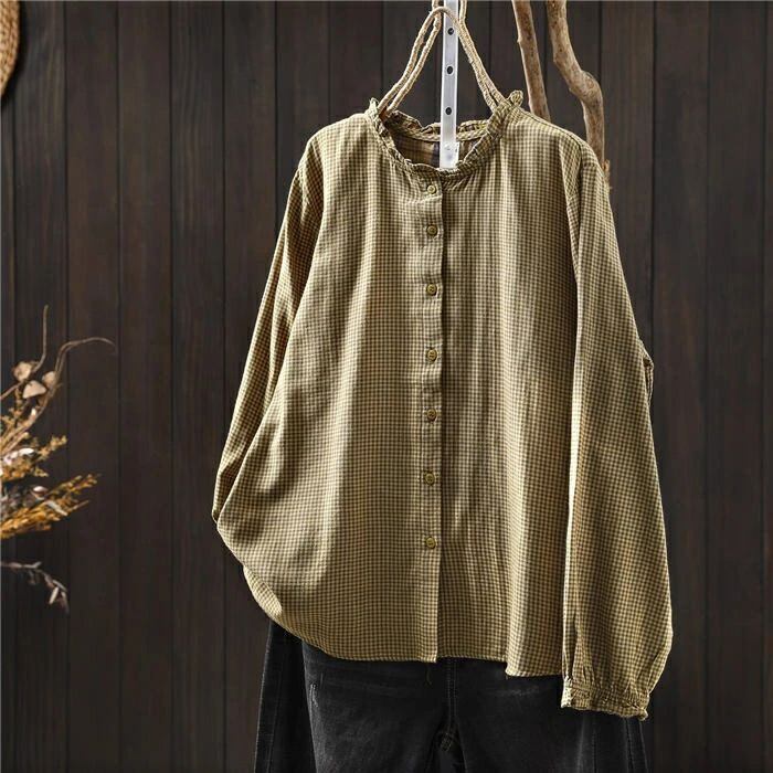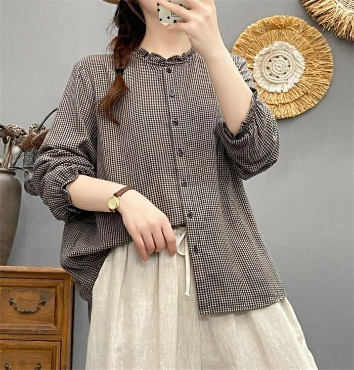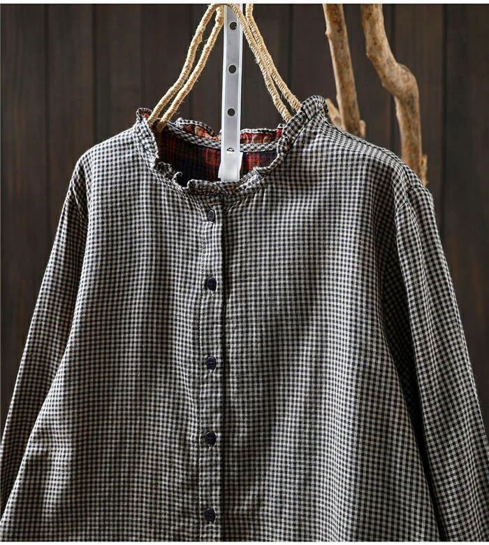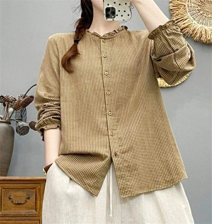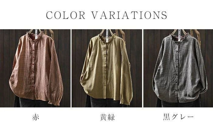 フリル襟 シャツ ブラウス ガーゼシャツ チェック柄 綿100% レディース 長袖 レディースシャツ トップス ガーゼ シャツ ダブルガーゼ 2重ガーゼ カジュアル ナチュラル 体型カバー ゆったり 通勤 オフィス 総柄 春 秋 大人 可愛い コットン 20代 30代 40代 送料無料 きれいめ 新作 着痩せ OL 通勤 オフィス 着回し 肌に優しい ミセス 大人 かわいい シンプル カジュアル オフィス ナチュラル 定番 可愛い