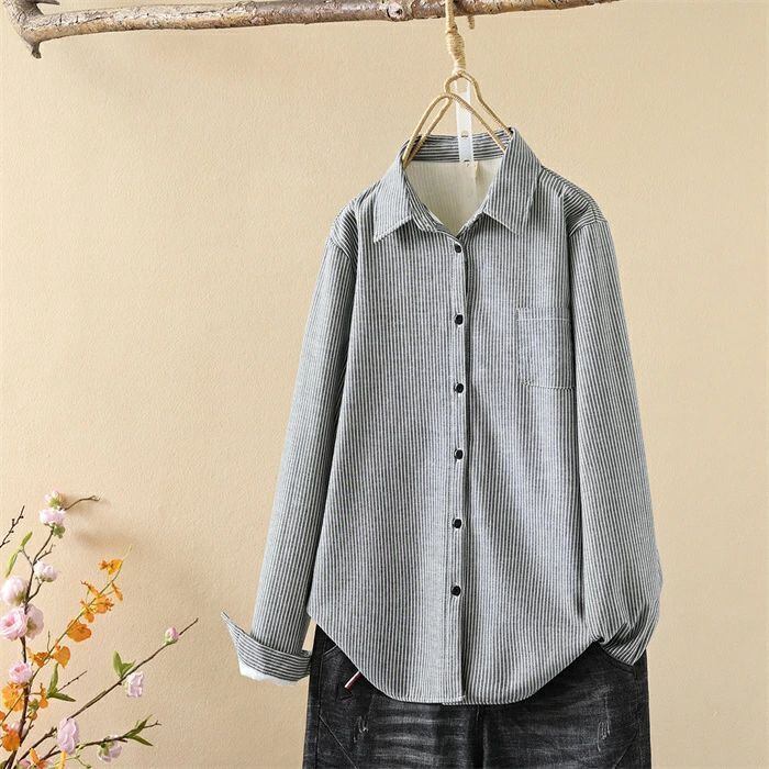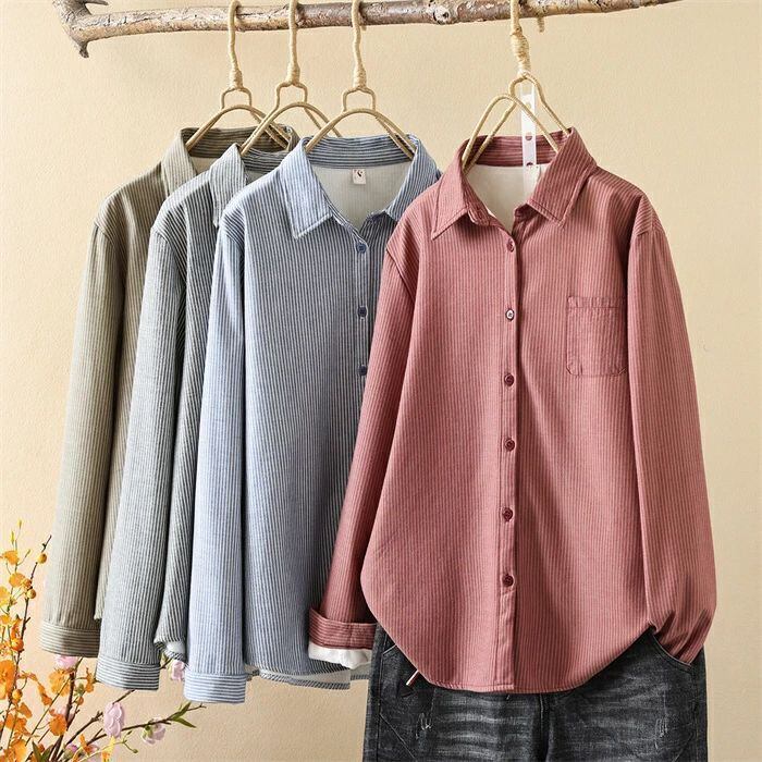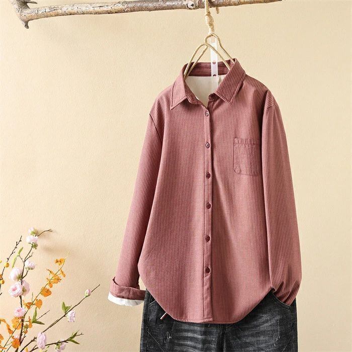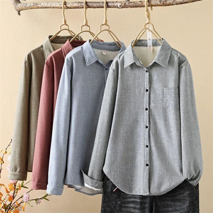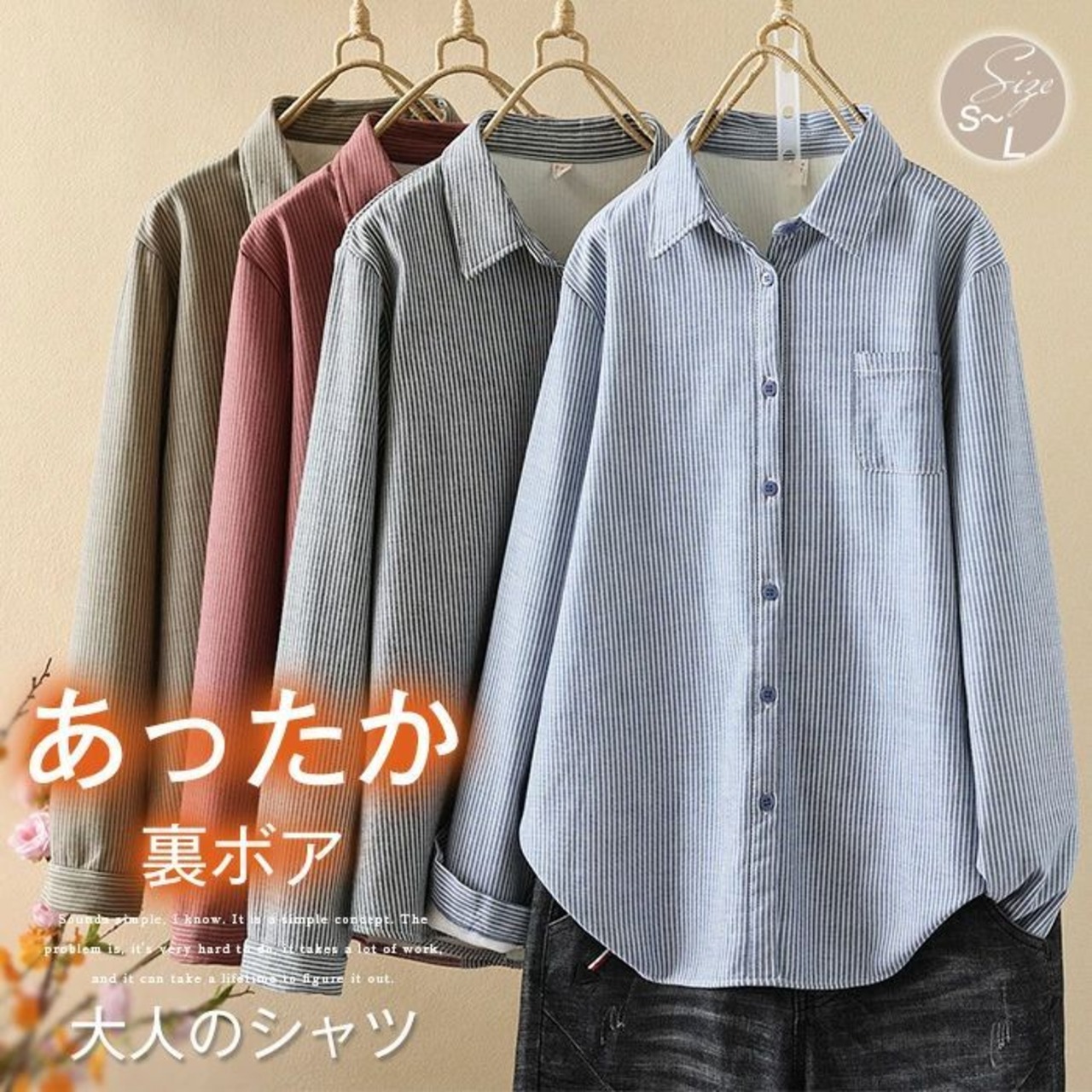裏起毛 シャツ ブラウス 長袖 レディース 秋冬 綿 コットン 裏起毛シャツ トップス ストライプ柄 シャツブラウス 秋 冬 通勤 大きいサイズ ゆったり 着回し 裏ボア 厚手 暖かい あったか 防寒 保温 50代 30代 40代 黒 ブラック グレー オフィス カジュアル 送料無料 きれいめ 新作 着痩せ OL 通勤 オフィス 着回し 肌に優しい ミセス 大人 かわいい シンプル カジュアル オフィス ナチュラル 定番 可愛い