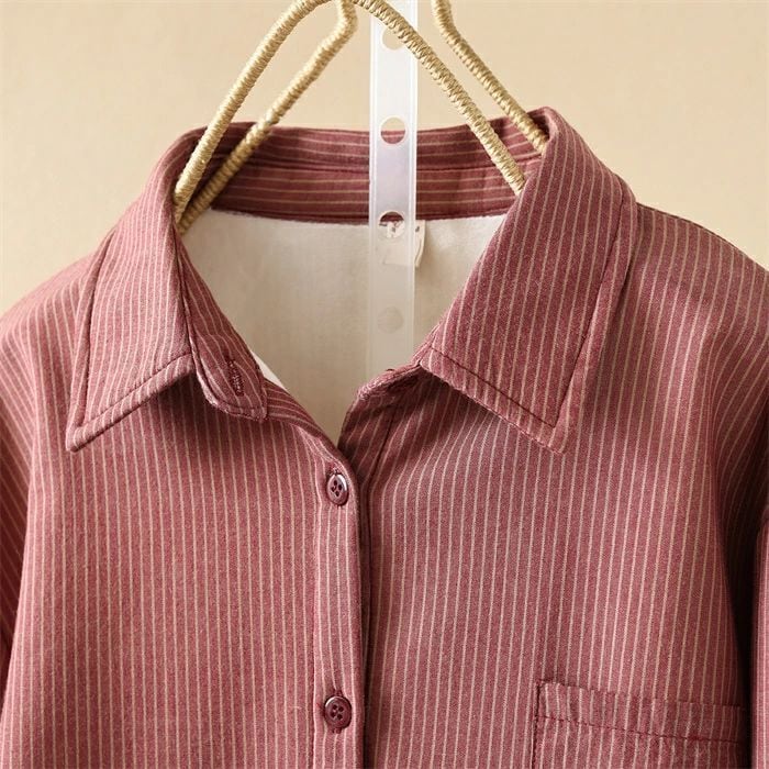 裏起毛 シャツ ブラウス 長袖 レディース 秋冬 綿 コットン 裏起毛シャツ トップス ストライプ柄 シャツブラウス 秋 冬 通勤 大きいサイズ