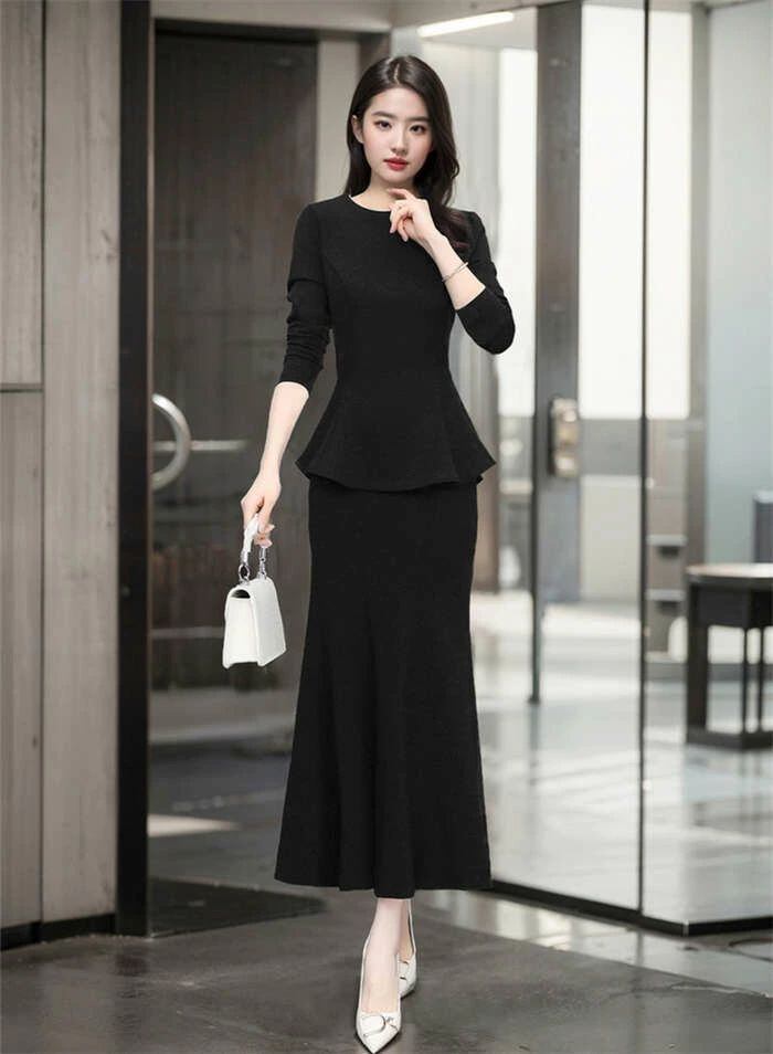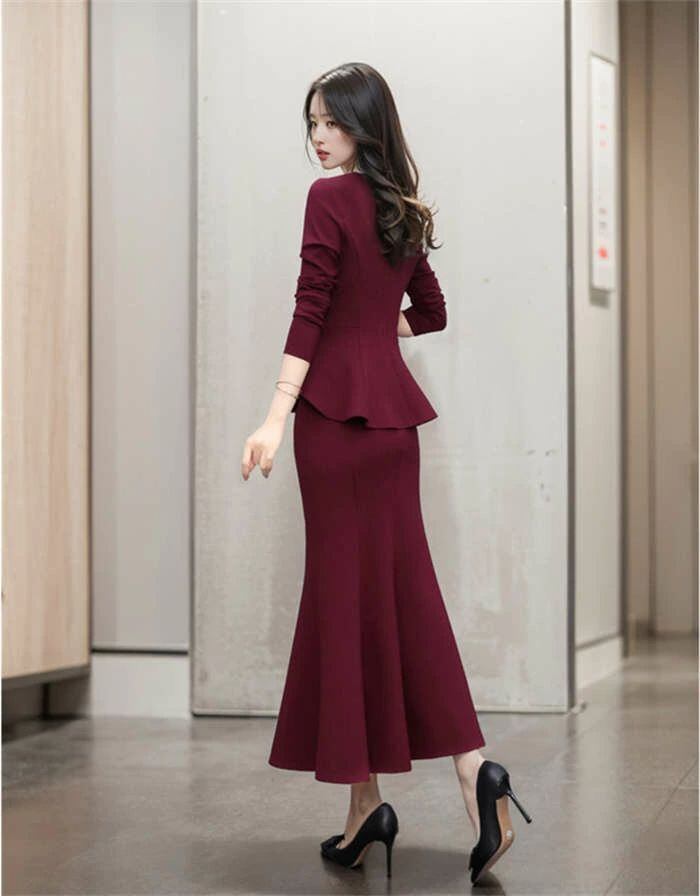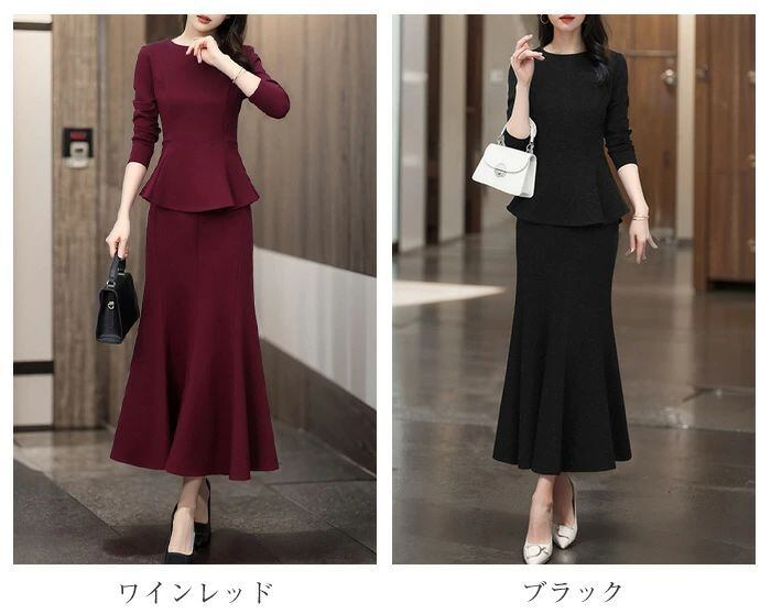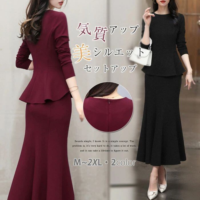 上下セットアップ レディース 春秋 フレアトップス タイトスカート 美シルエット 長袖 マーメイドスカート きれいめ スリム 細見え 華やか
