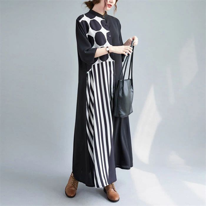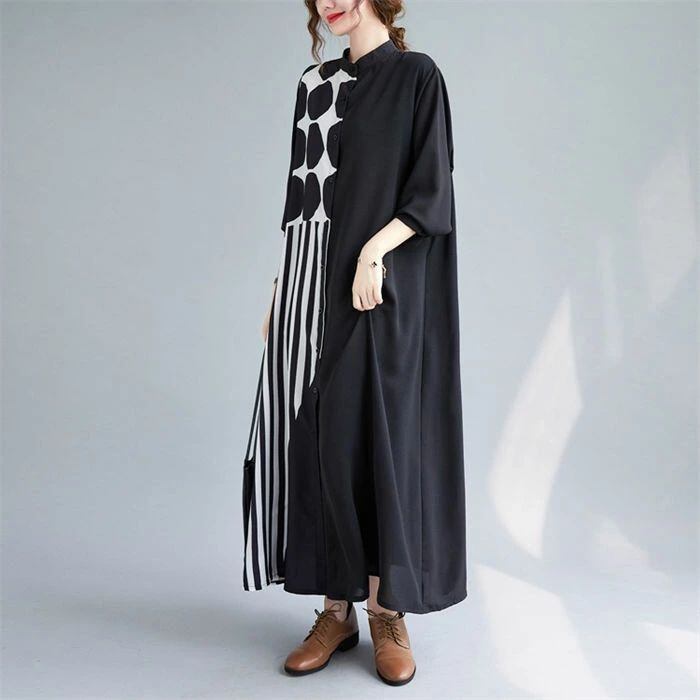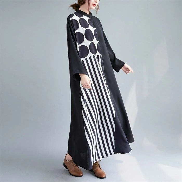 ワンピース ロングワンピース シャツワンピース ワンピース レディース 春 秋 ロングシャツワンピース 長袖 ゆったり 切り替え アシンメトリー 立ち襟 カジュアル Hライン 春秋冬 大きいサイズ クラシック ゆったり カラープリント 長袖 体型カバー 羽織り 通勤 オフィス 入園式 卒業式 母の日 韓国 通勤 オフィス 入園式 卒業式 送料無料