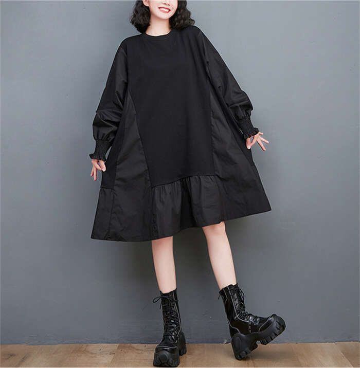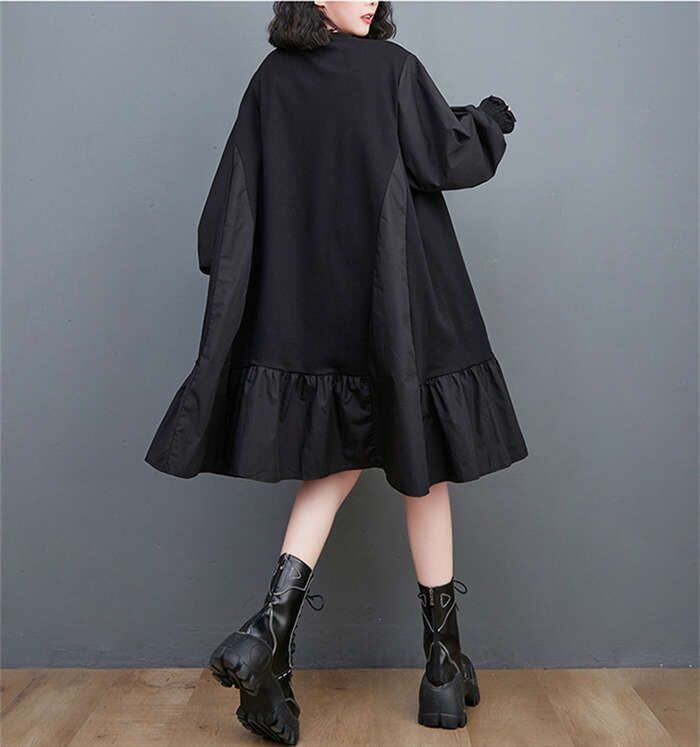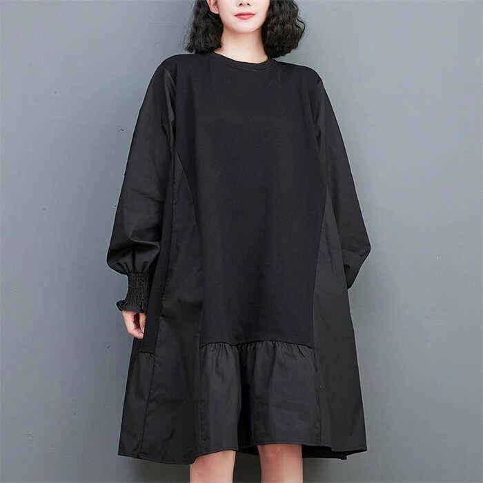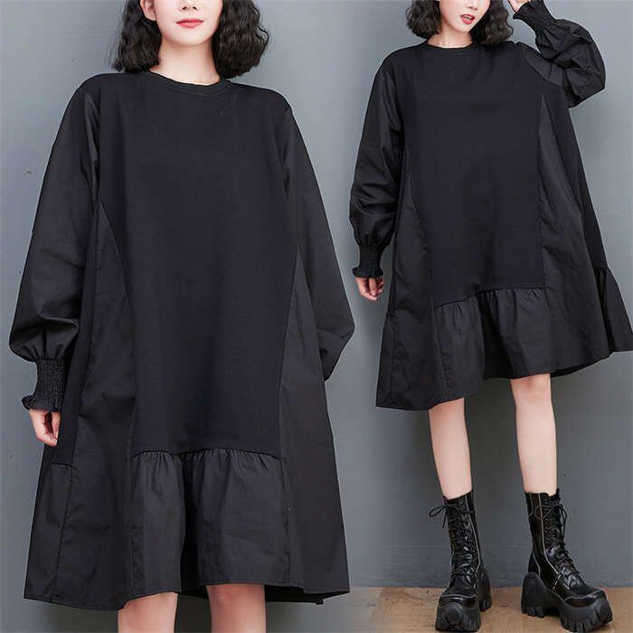 ワンピース レディース チュニックワンピース レディース 秋冬 チュニック ワンピース 長袖 ドッキング スウェット トップス パーカー 異素材 切り替え パーカーワンピース プルオーバー 無地 体型カバー スウェットワンピース フレア 大きいサイズ 通勤 暖かい 送料無料 30代40代50代