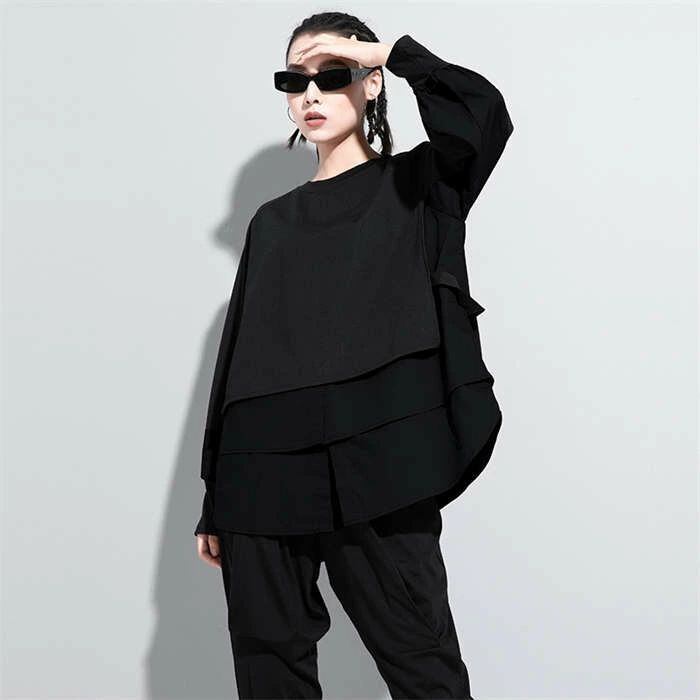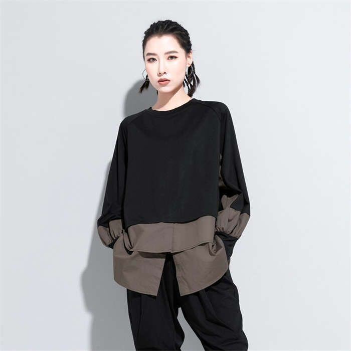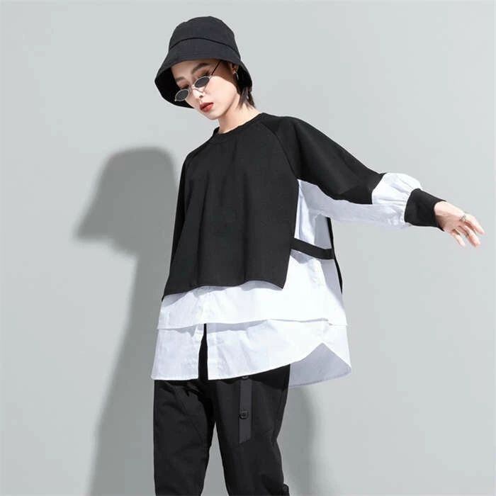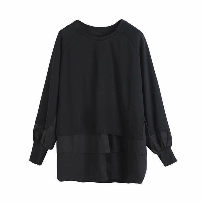 パーカー レディース 異素材レイヤード風トップス スウェット レディース 長袖 モード系 個性的 スウェット トレーナー プルオーバー トップス ドッキング フェイクレイヤード 重ね着風 無地 大人 カジュアル ビッグシルエット ゆったり 体型カバー 春 秋 30代 40代 50代 送料無料