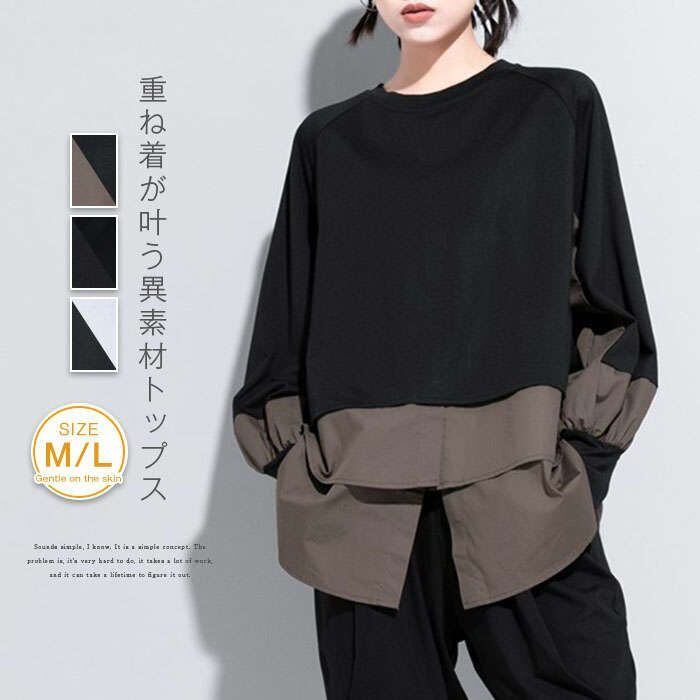 パーカー レディース 異素材レイヤード風トップス スウェット レディース 長袖 モード系 個性的 スウェット トレーナー プルオーバー トッ