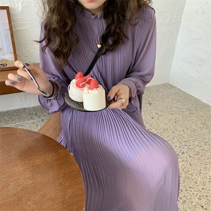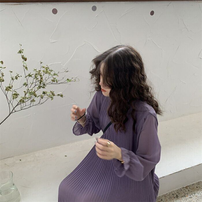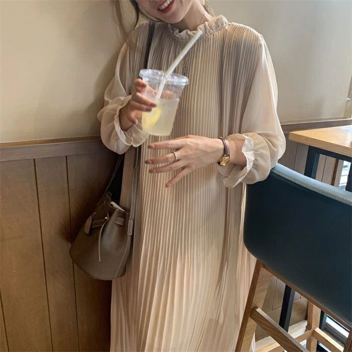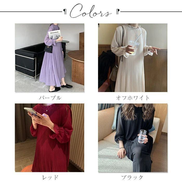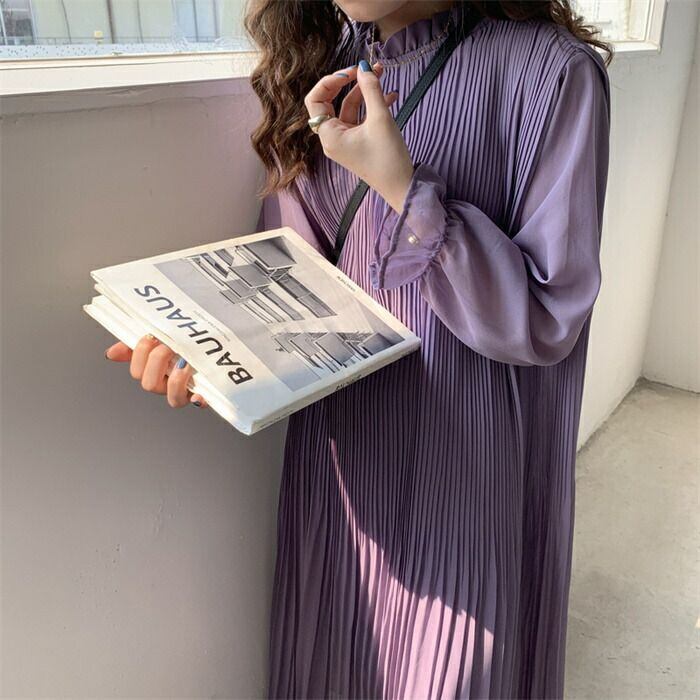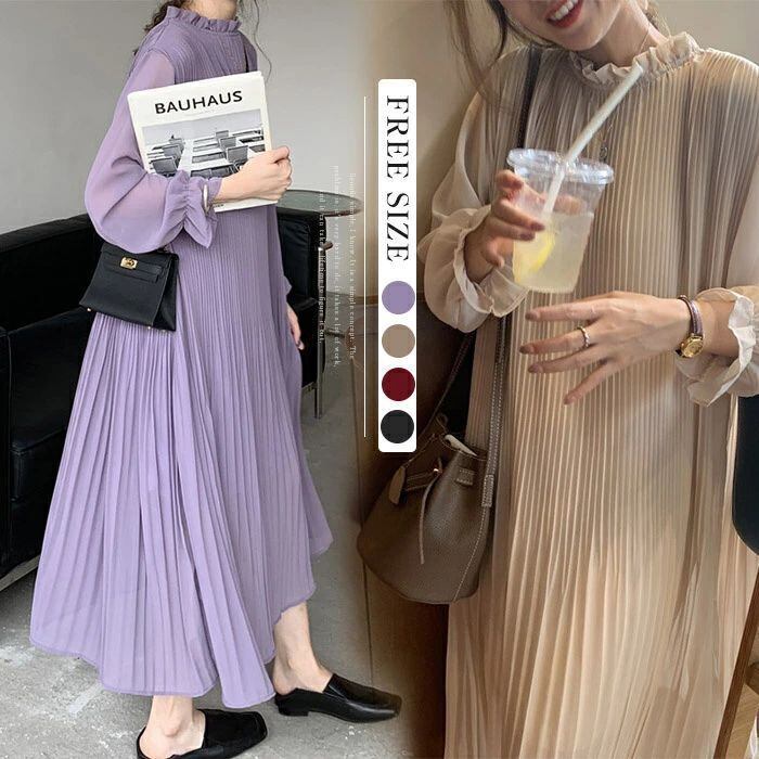 プリーツワンピース ワンピース ロング 長袖 春 夏 秋 秋服 ロング ワンピース プリーツ ワンピ 透け感 ゆったり レディース ワンピース ド