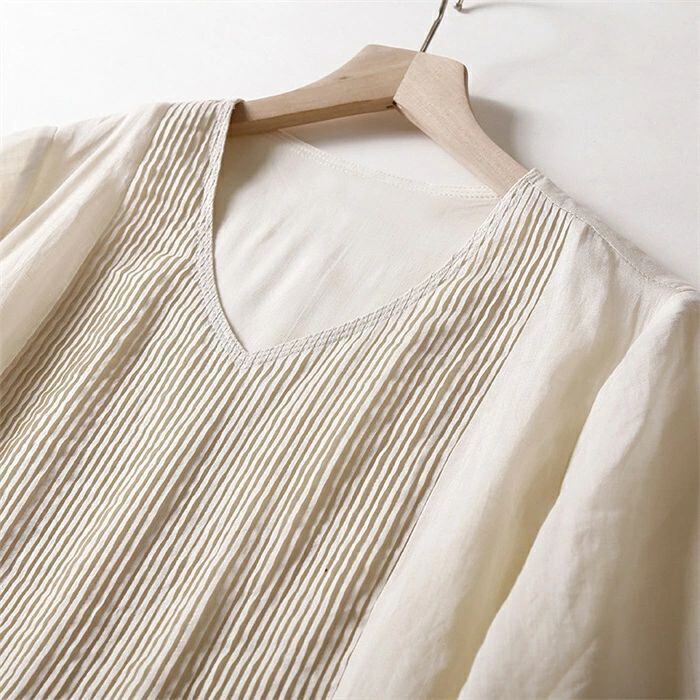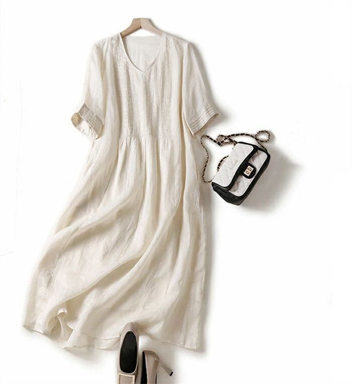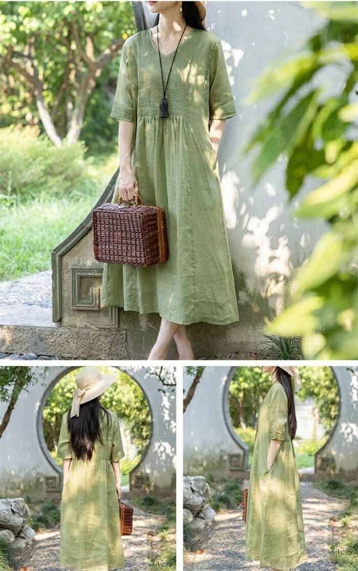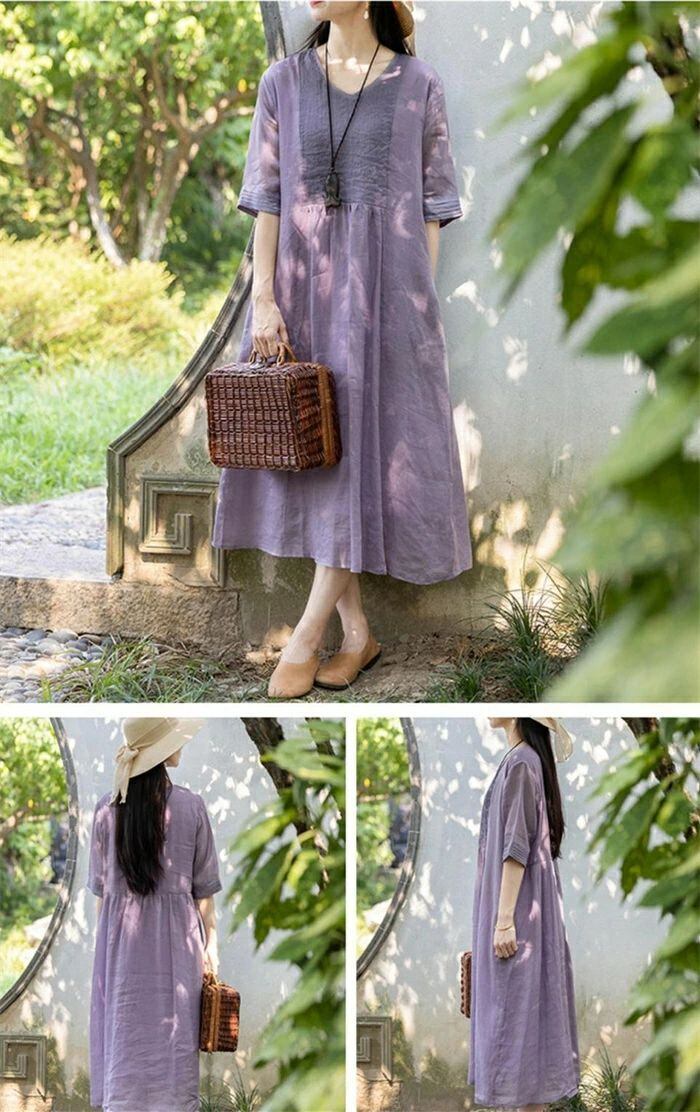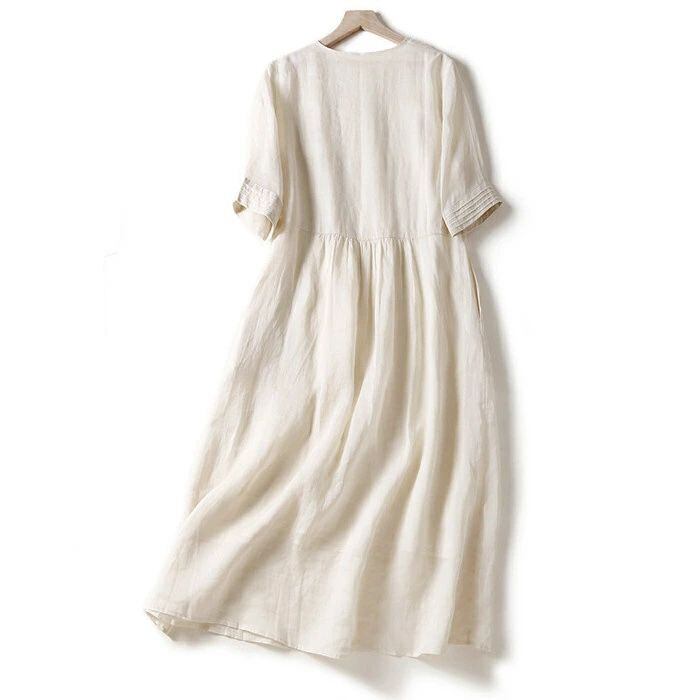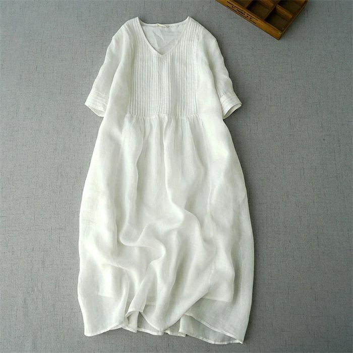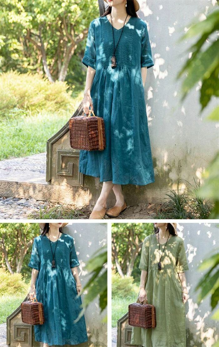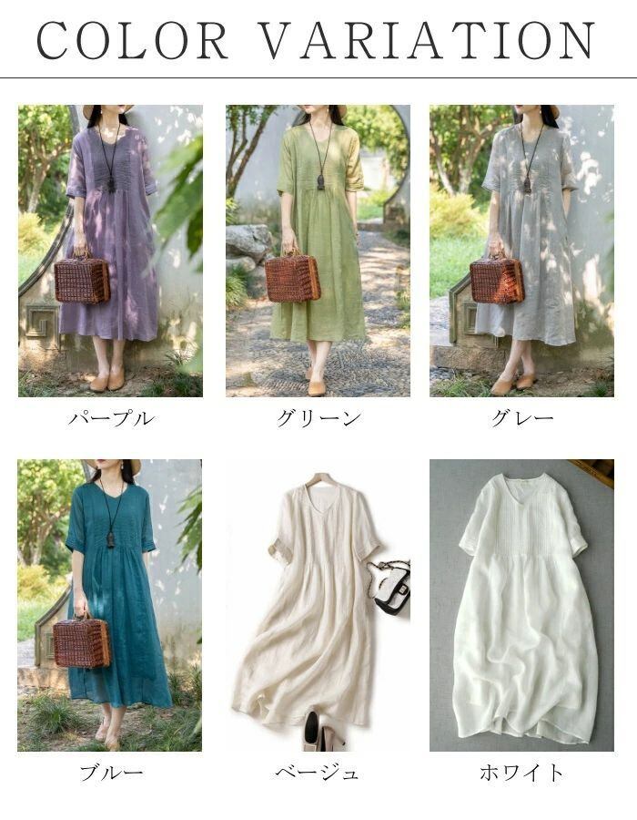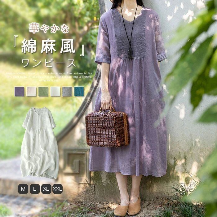 ワンピース 綿麻ワンピース レディース 春夏 ロングワンピース ロング丈 五分袖 綿麻 大きいサイズ ワンピ ギャザー vネック Aライン ロン