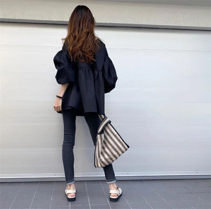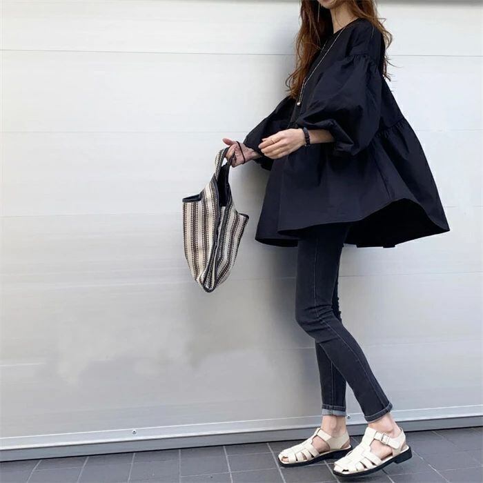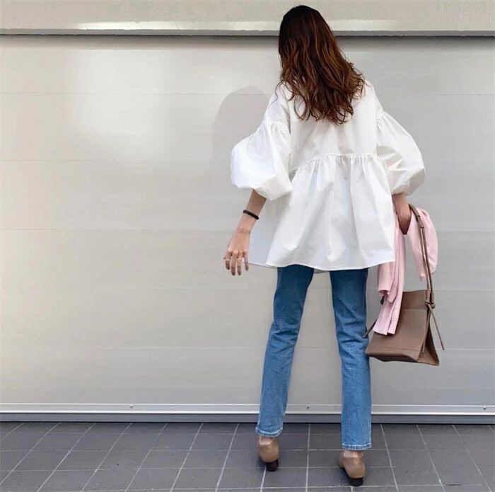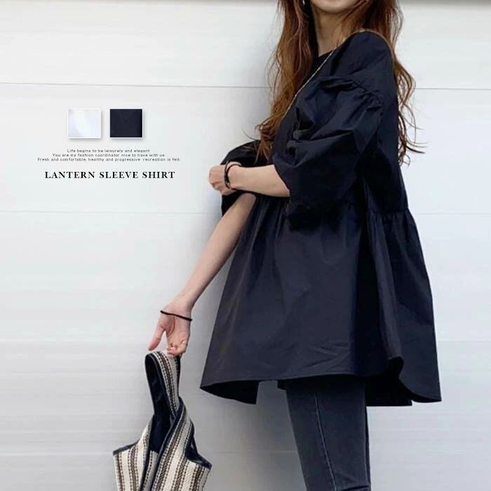 シャツ ブラウス レディース 前後2way 春 秋 トップス 無地 体型カバー クルーネック vネック 無地 パフスリーブ フレア 着?せ きれめクラシカル エレガント おしゃれ 着回し 普段着 OL ビジネス フォマール 通勤 上品 30代 40代 50代