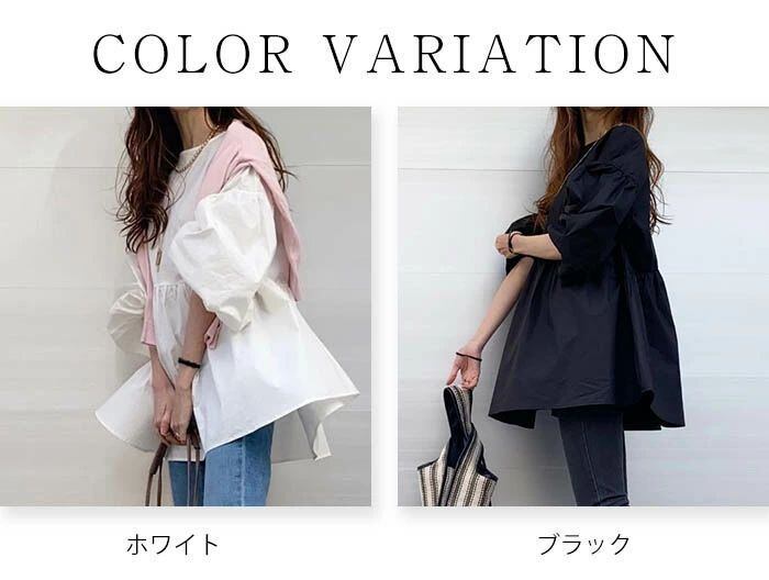 シャツ ブラウス レディース 前後2way 春 秋 トップス 無地 体型カバー クルーネック vネック 無地 パフスリーブ フレア 着?せ きれめクラ