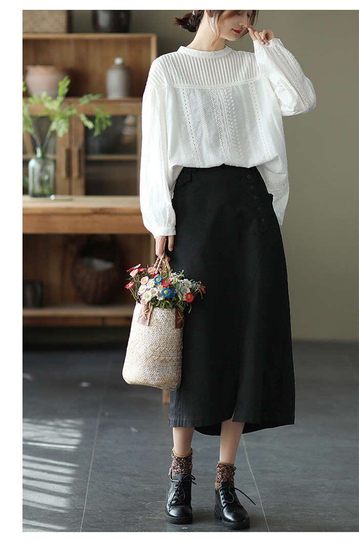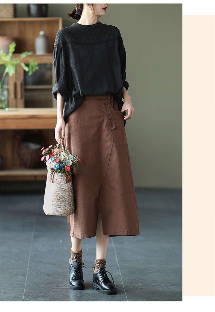 ト無地スカート綿麻混スカートプリーツスカートリネンスカートサロペット