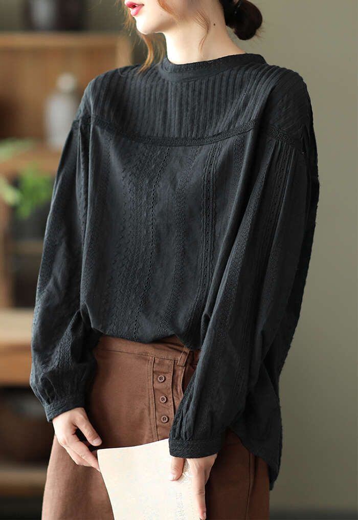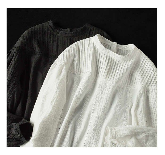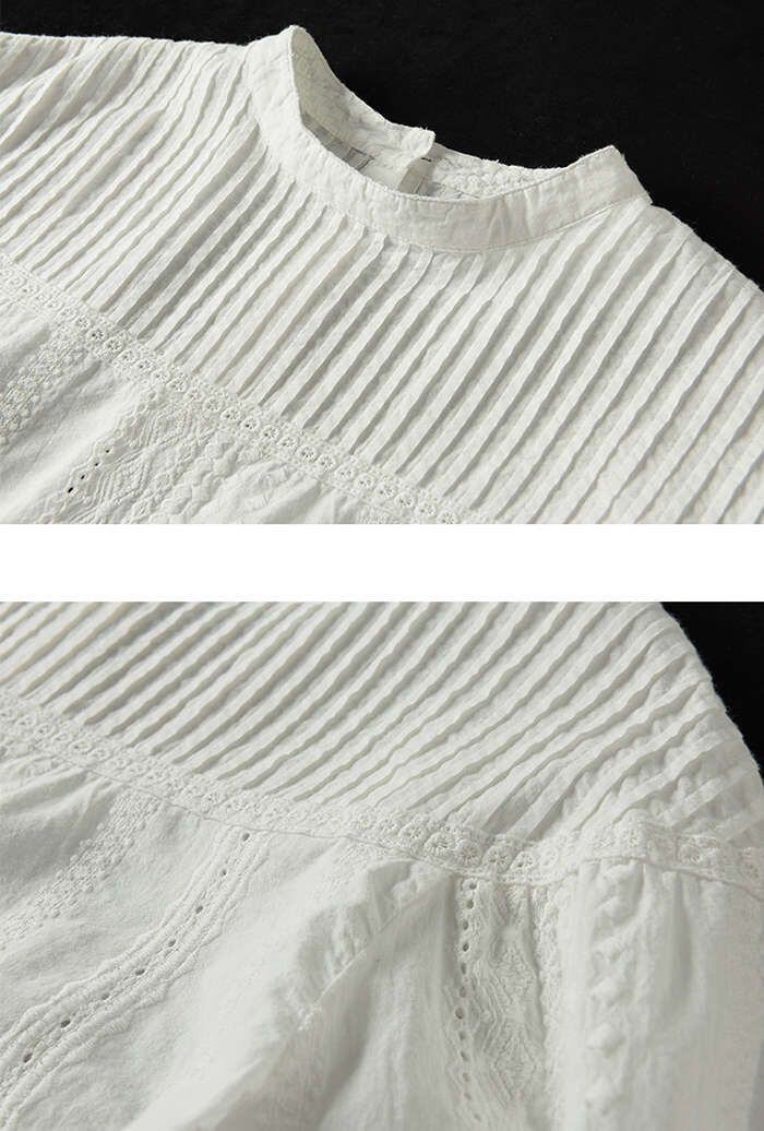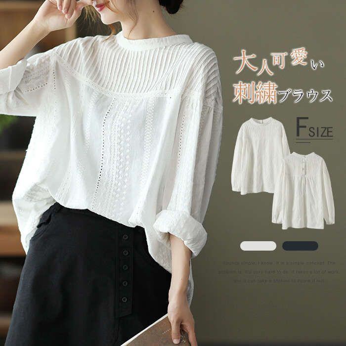 刺繍ブラウス 長袖 レディース シャツ パフスリーブ 春 刺繍レースブラウス おしゃれ トップス シャーリングバンディング きれいめ シンプ