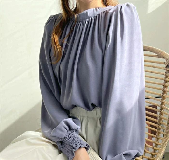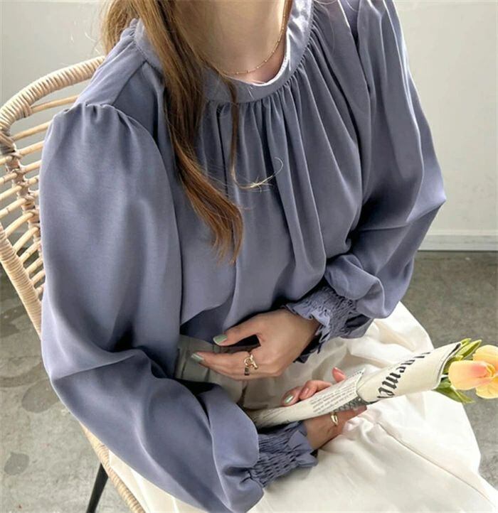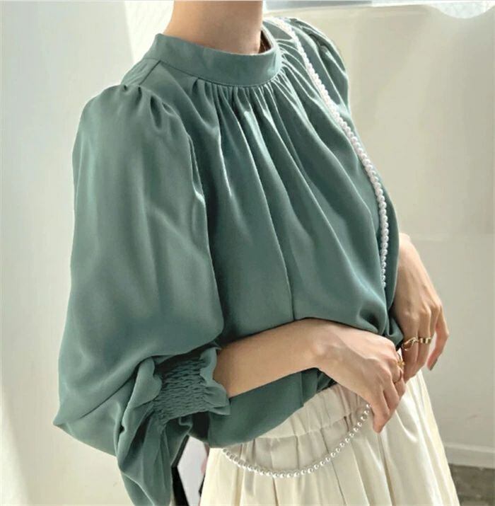 シフォンシャツ ブラウウ レディース シャツブラウス シャツ シフォン 長袖 ハイネック パフ袖 無地 トップス 韓国風 ゆったり 体型カバー