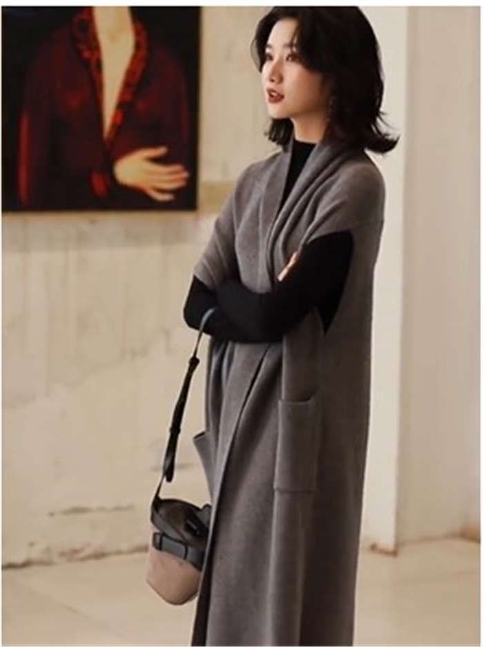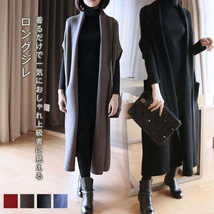 ジレ ベスト レディース トップス 秋冬 ロングジレ レディース 冬 ロング ジレ ニットベスト おしゃれ オーバーサイズ ショールカラー 秋