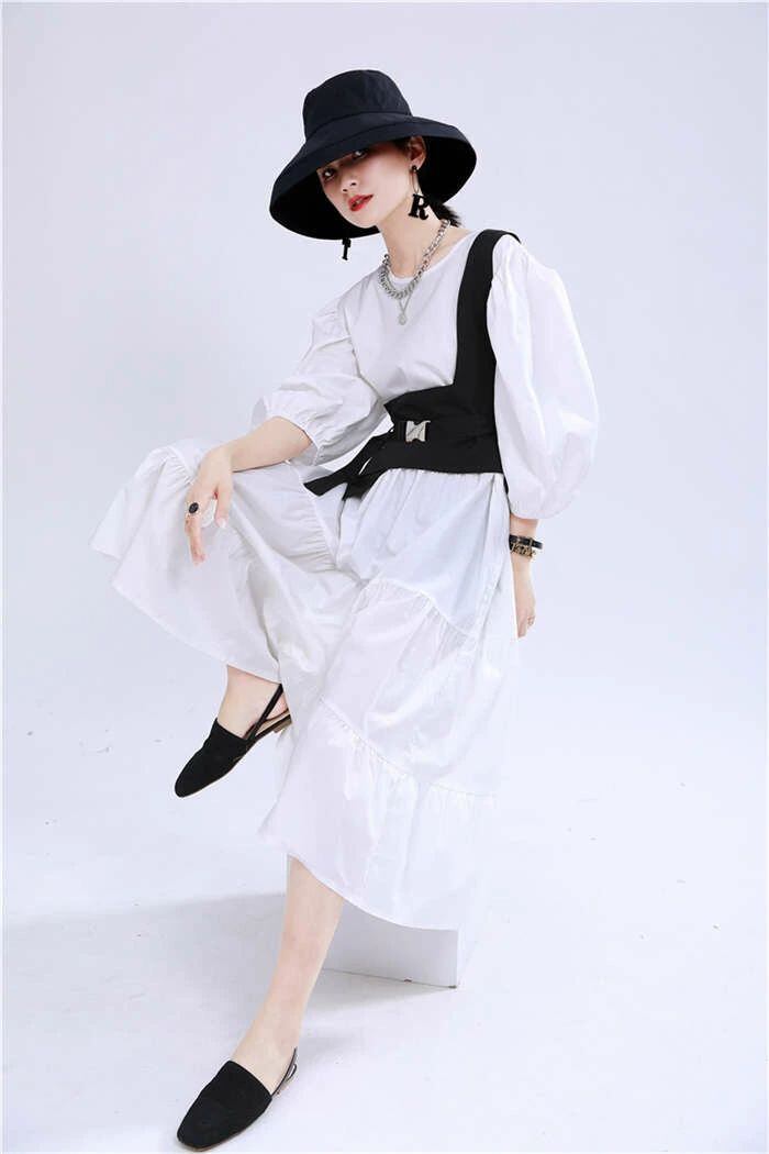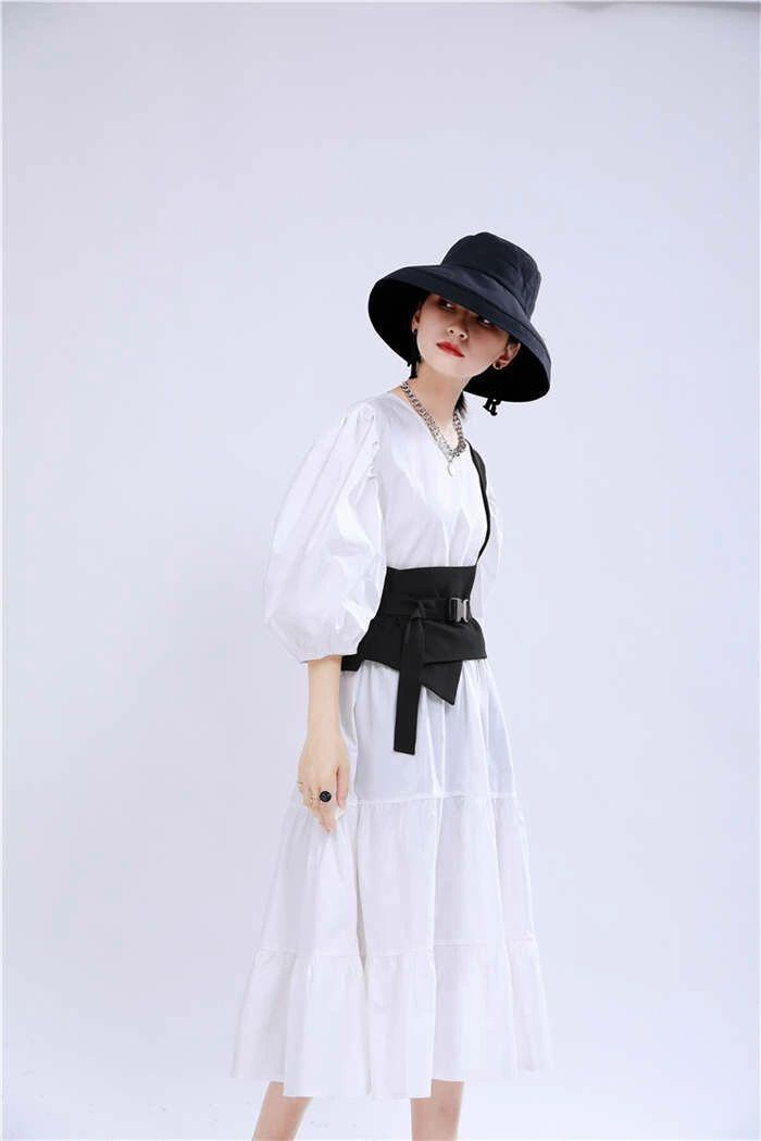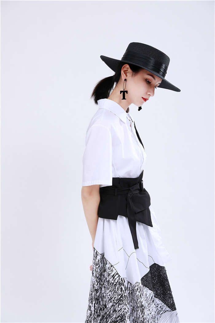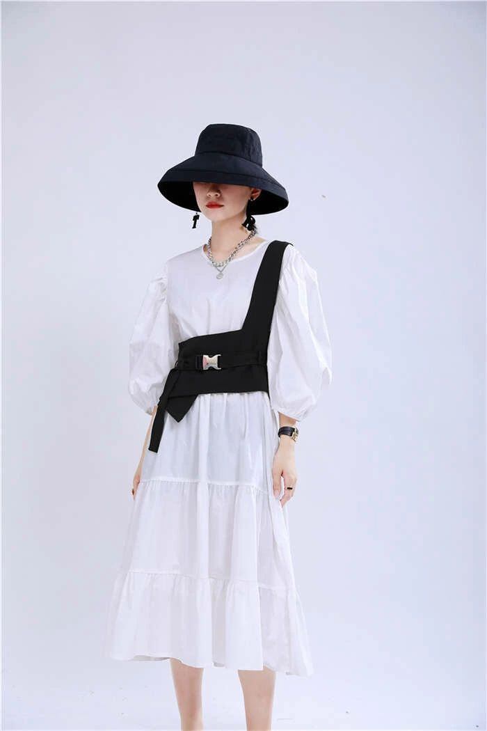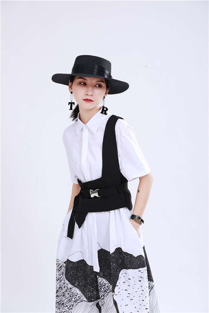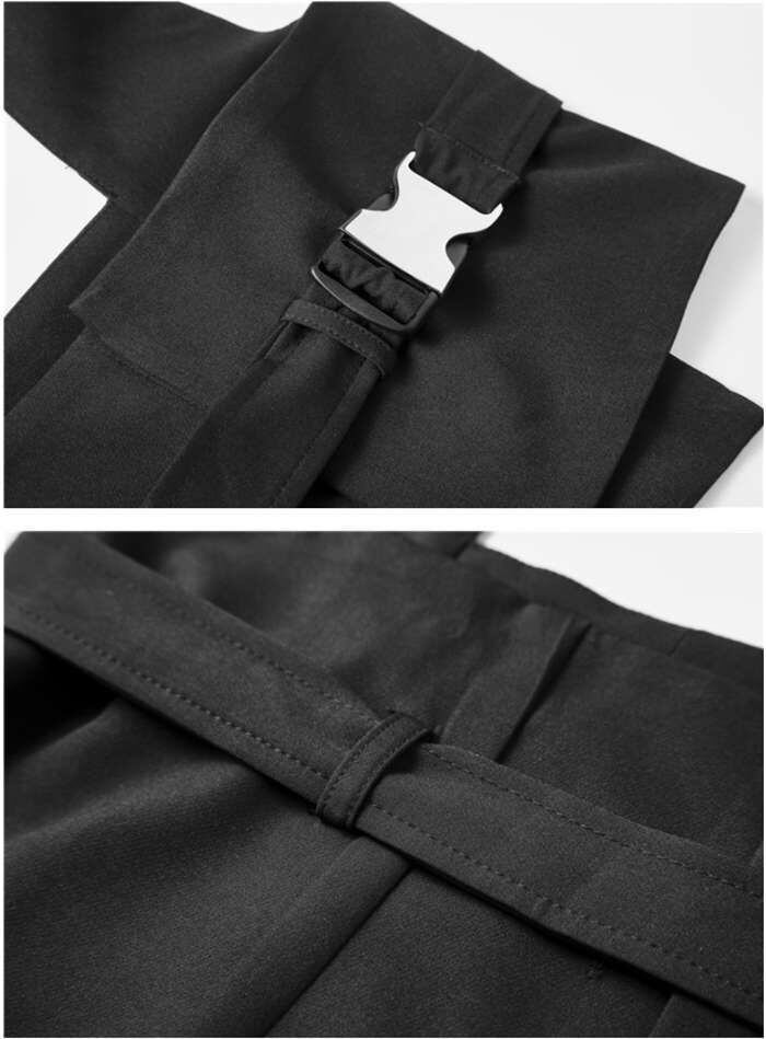 オリジナルデザイン ジレ ベスト レディース イレギュラーヘム 変形 個性的 コルセットベルト ワンショルダー トップス レディース アシンメトリー トップス 重ね着 チュニック ベスト レイヤード風 OL 通勤 ブラック 送料無料 20代 30代 40代