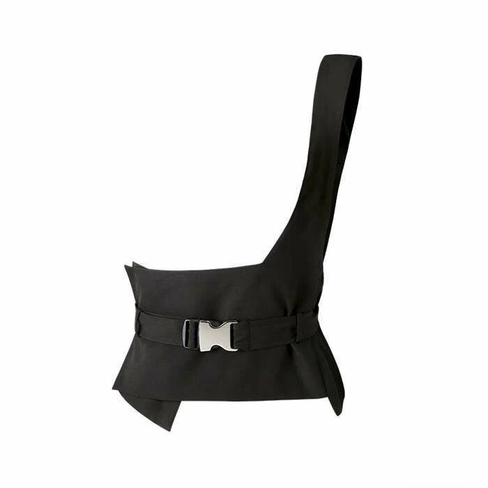オリジナルデザイン ジレ ベスト レディース イレギュラーヘム 変形 個性的 コルセットベルト ワンショルダー トップス レディース アシン