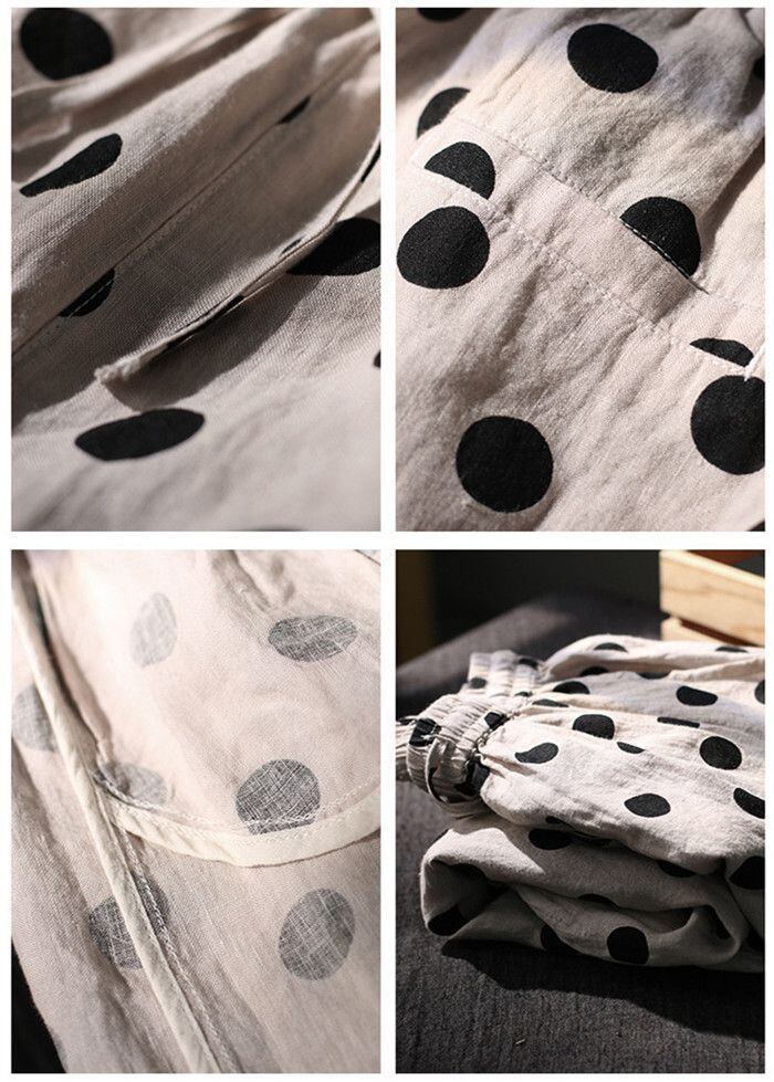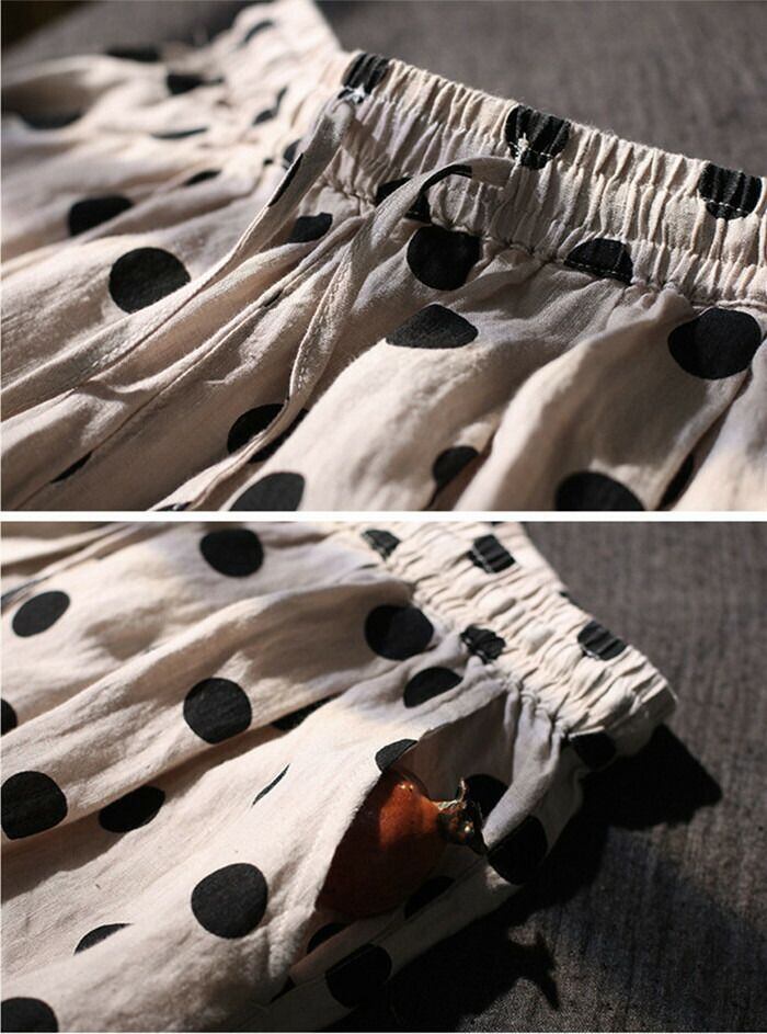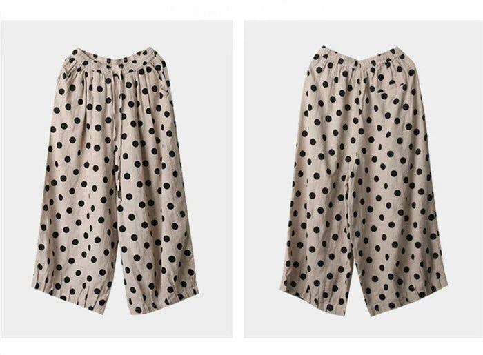 ワイドパンツ レディース 夏 コットン リネン パンツ ガウチョパンツ 綿麻風パンツ ドット 水玉柄 チノパン ズボン 九分丈 ボトムス イージ