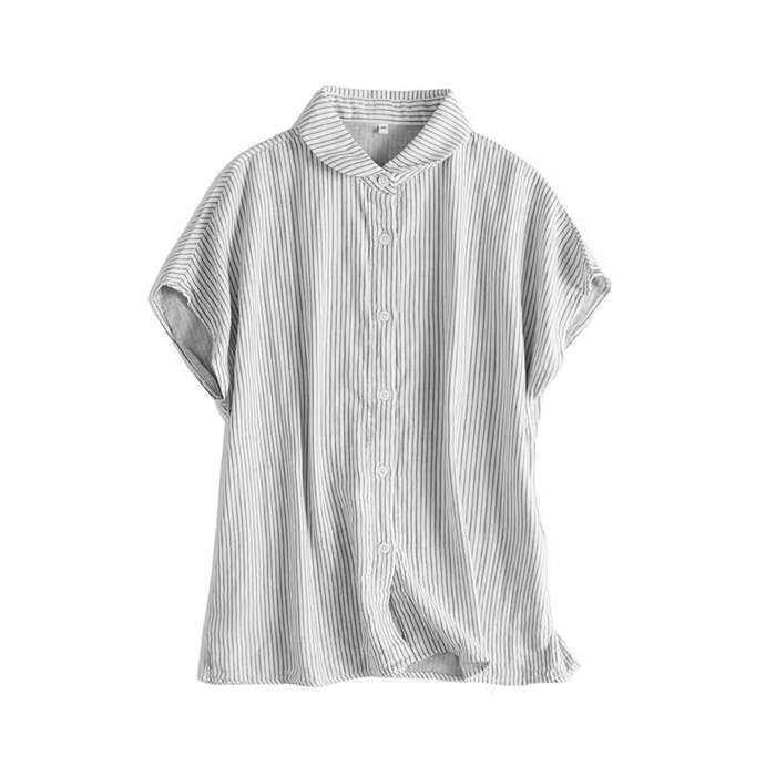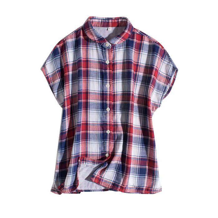 ガーゼ シャツ ガーゼシャツ レディース ガーゼ コットンシャツ ガーゼ シャツ ガーゼ シャツ 襟 レディース トップス フレンチスリープ 半袖 ブラウス 折り襟 チェック柄 ストライプ 無地 コットン100% 綿 30代 40代 2重ガーゼ 半袖シャツ 上品 送料無料