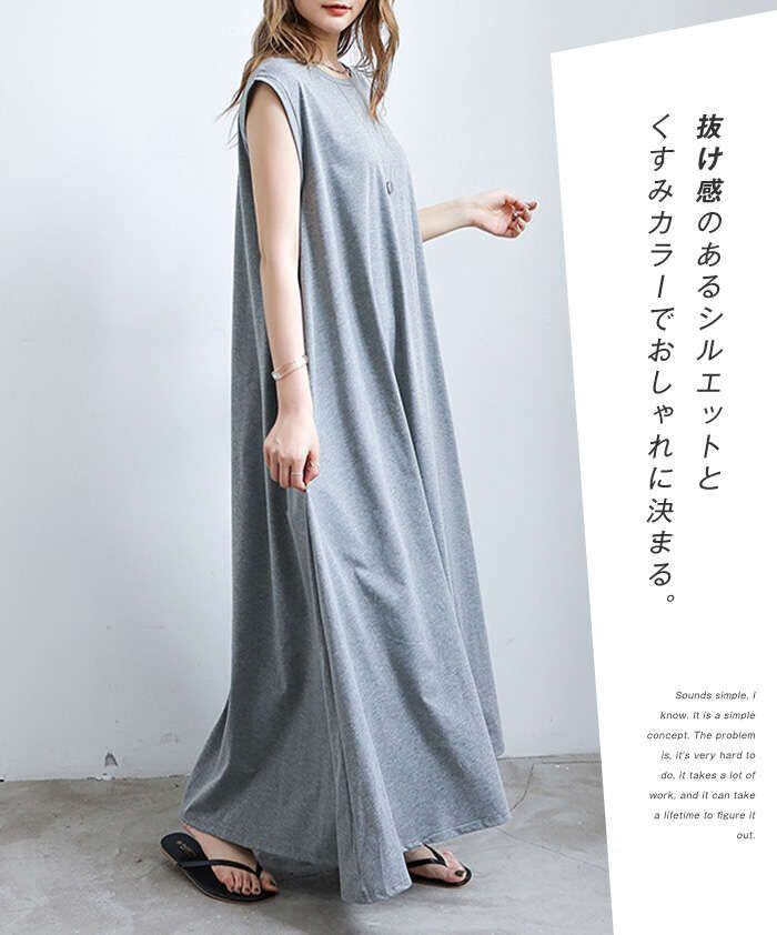 マキシワンピース 夏 レディース ワンピース ロングワンピース フレア 無地 抜け感 ドロップショルダー フレンチスリーブ 半袖 ノースリー