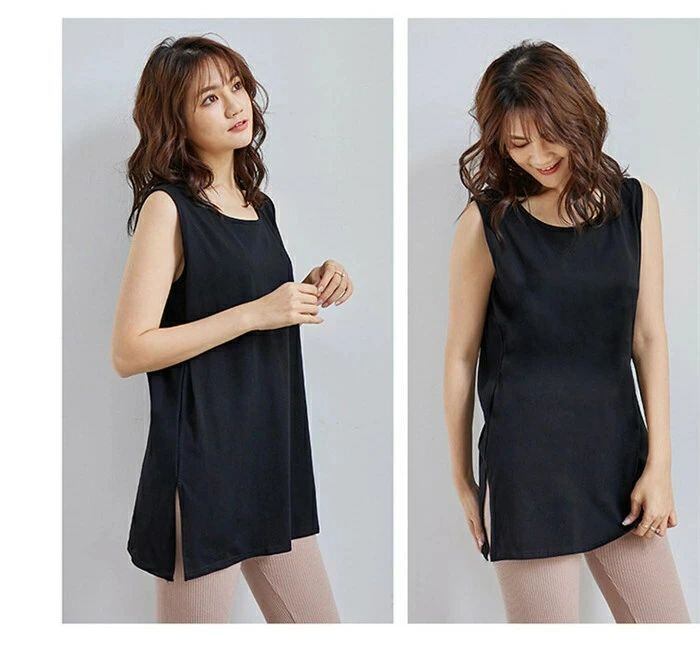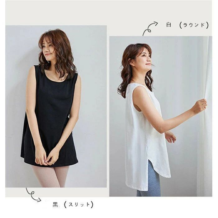 Tシャツ レディース 40代 春夏 タンクトップ インナー Uネック コットンリネン 大きいサイズ レディース トップス チュニック ブラック ロング丈タンクトップ ミディアム丈 白 黒 ベーシック タイトシルエット カジュアル 大人 つけ裾 付け裾 レイヤードトップス Tシャツ スリット ラウンド レイヤードタンクトップ つけ裾 付け裾 レイヤードトップス Tシャツ スリット ラウンド ホワイト ブラック