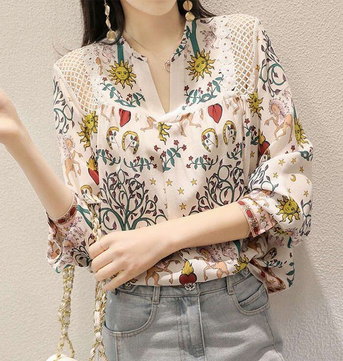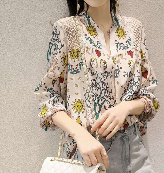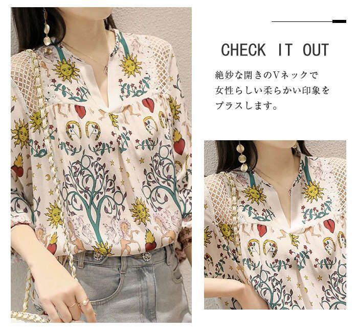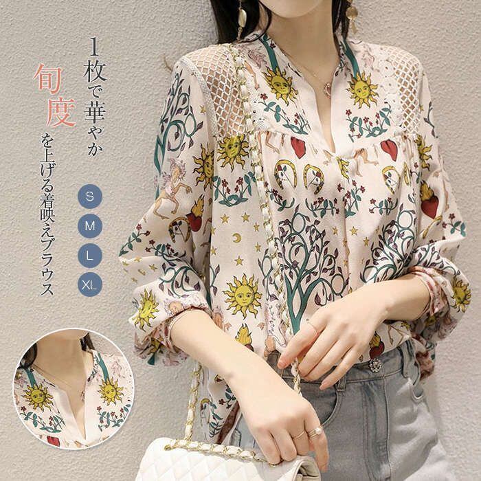 ブラウス レディース 長袖 ブラウス 春新作 オフィスブラウス プリント Vネック オシャレ ブラウス レショントップス 韓国風 大人通勤OL ゆ