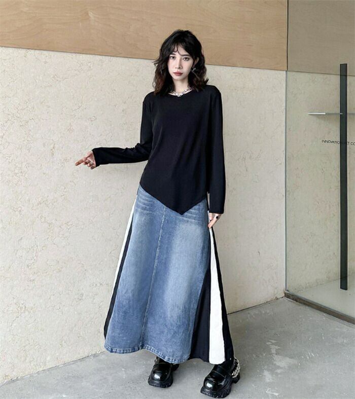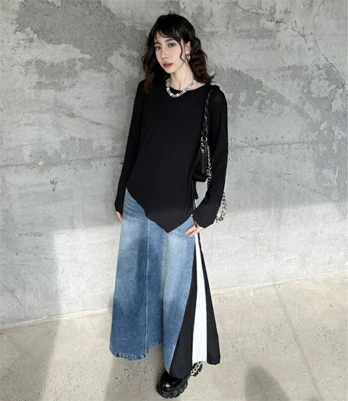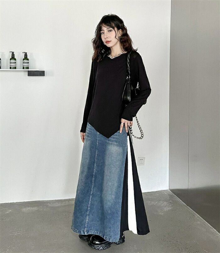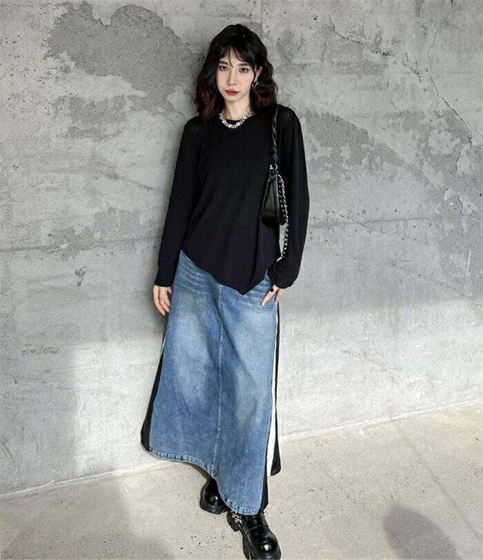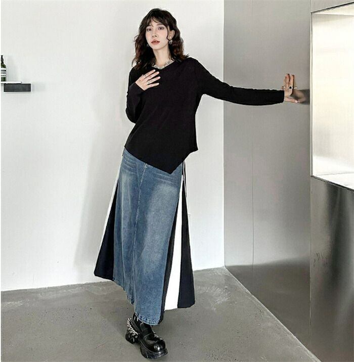 膝下切り替え切替ハイウエストアシンメトリースキッパードルマンギ
