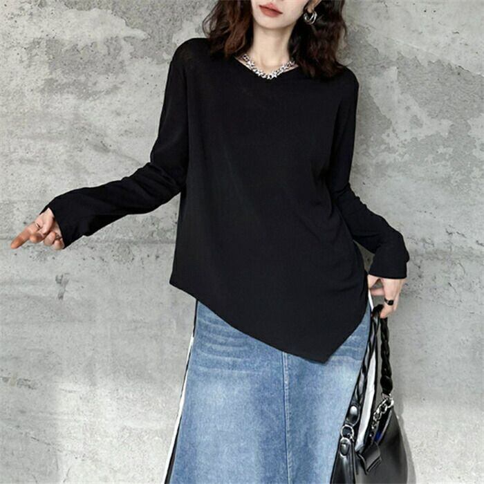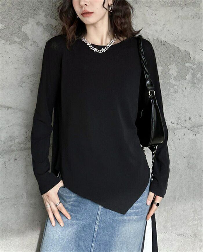 Tシャツ レディース アシンメトリーTシャツ ロングTシャツ 不規則 長袖 トップス プルオーバー 無地 大きいサイズ ゆったり 体型カバー おしゃれ シンプル レイヤード ヘムデザインTシャツ Tシャツ レディース 長袖 トップス カットソー クルーネック アシンメトリーTシャツ 綿麻 変形Tシャツ 変形デザイン モード系 個性的 おしゃれ 無地 体型カバー 夏 美ライン メンズ ユニセックス 体型カバー きれいめ 春 秋 30代 40代 20代 送料無料
