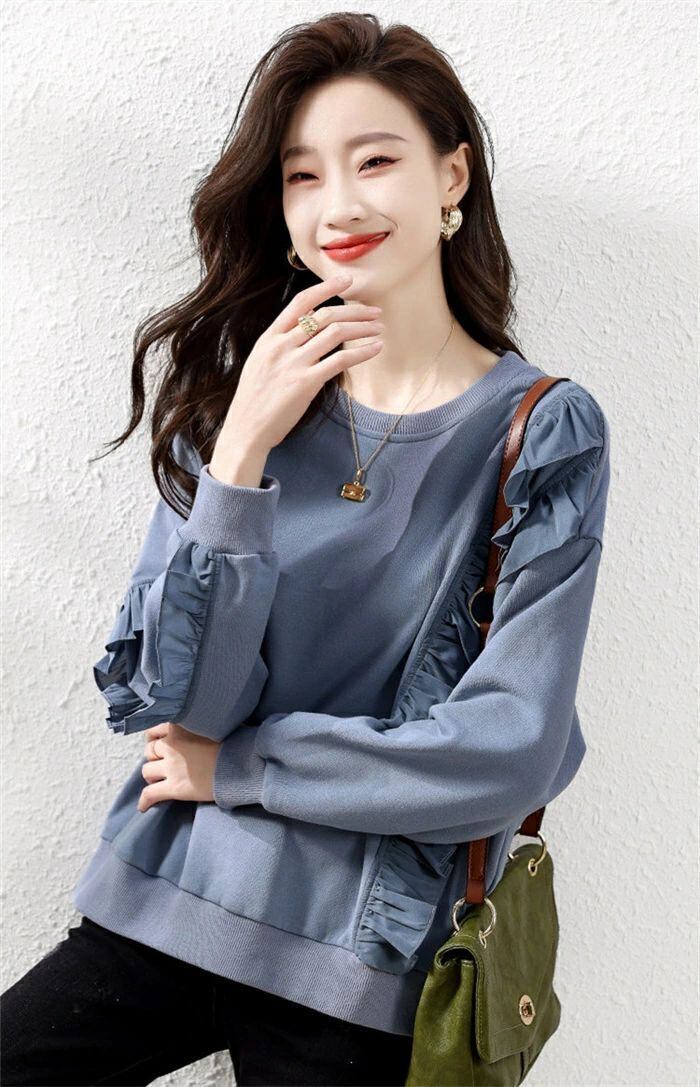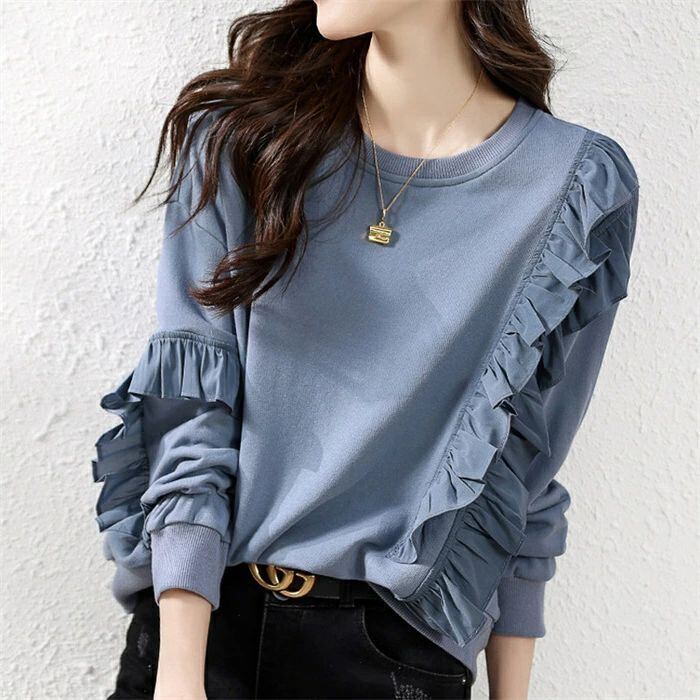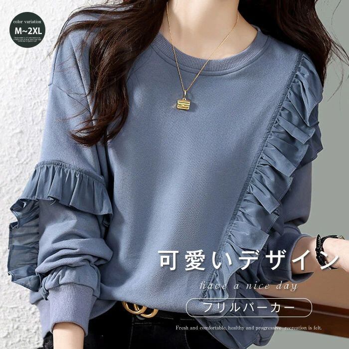 パーカー フリル 切り替え レディース 秋 ブラウス 切り替えパーカー スウェット トレーナー 長袖 フリルパーカー オフィス トップス 大きいサイズ プルオーバー ゆったり 体型カバー 着?せ カジュアル シンプル 通勤OL おしゃれ 大人 女性らしい 可愛い
